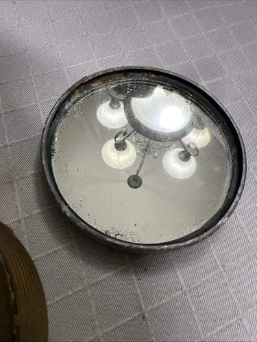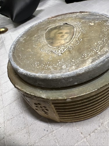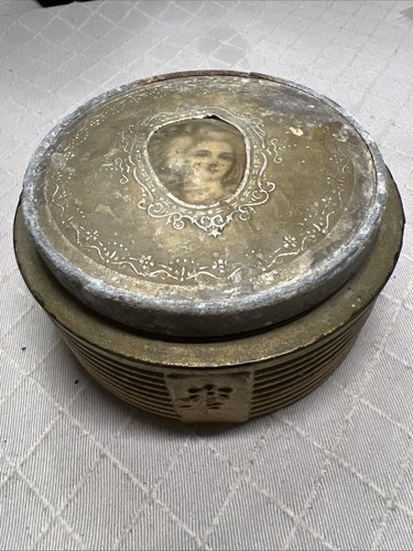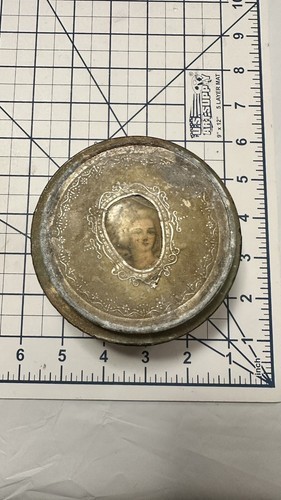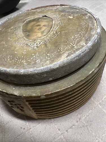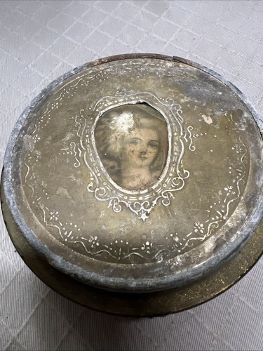 Art Deco glass Powder Box Pewter Metal Mirrored Lid With Victorian portrait