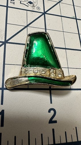 Beatrix Leprechaun Hat Vintage Rhinestone Pin Brooch signed St. Patrick's Irish