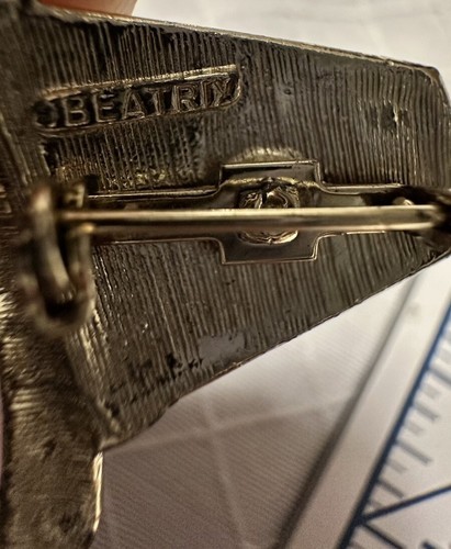 See pics as there is some wear. This Beatrix vintage pin features a Leprechaun hat design with clear rhinestones, perfect for St. Patrick's Day. The pin is signed by Beatrix and is made of metal. It is a charming and festive accessory to add to your collection of vintage and antique jewelry.