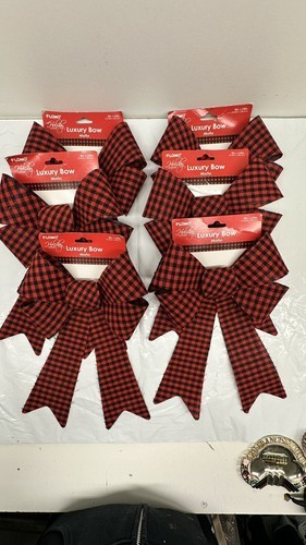 Lot of 6 Add a festive touch to your Christmas decor with these Holiday Red and Black Buffalo Check PVC Bows from 2 brands. . The bows are perfect for the holiday season and will add a touch of cheer to your home. The checked pattern in red and black gives them a classic and timeless look that will never go out of style.