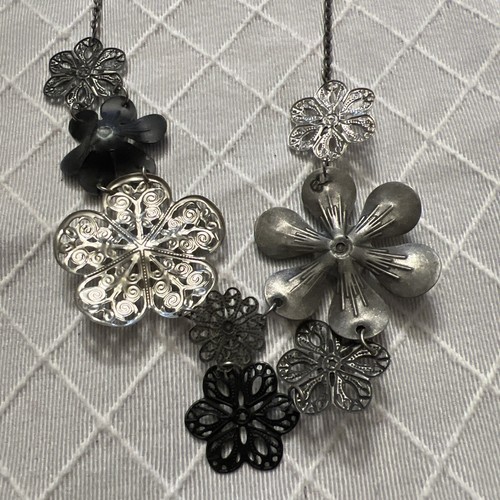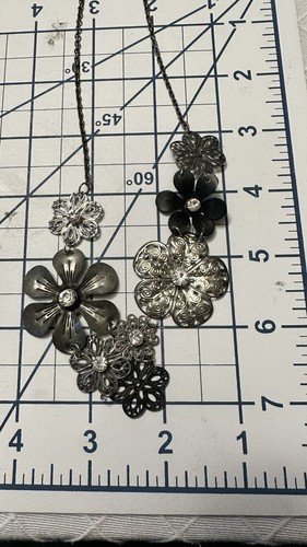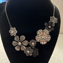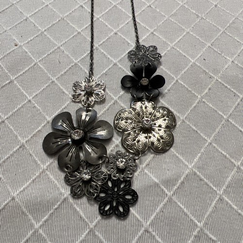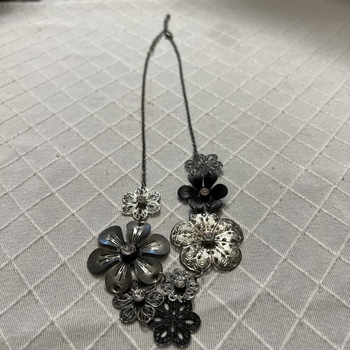 Floral Necklace with Clear Stone Accents Gray And Silver