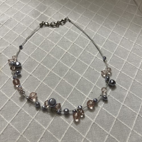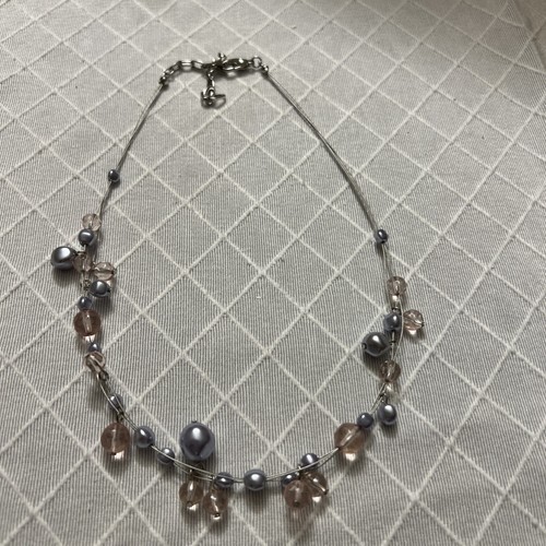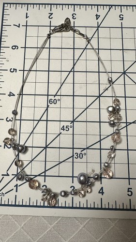 Silver Tone champagne, and blue Faux Pearl Beaded 17" Adjustable Necklace
