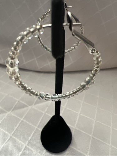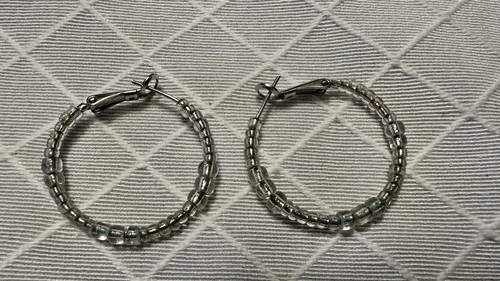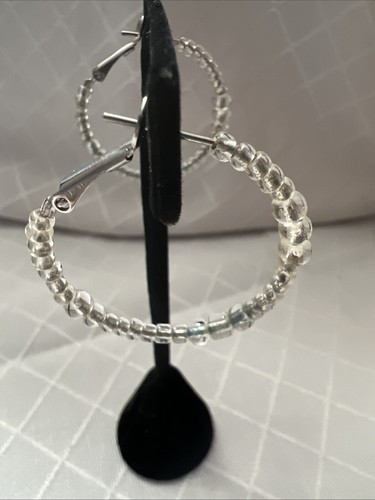Silver Tone w/ Clear Beads Hoop Earrings and similar items