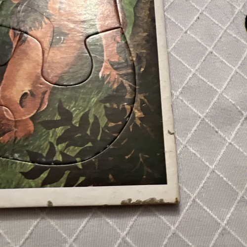 This vintage 1977 Whitman Frame Tray Puzzle features a charming design of a horse and colt on a farm, perfect for animal-loving puzzle enthusiasts. Made of cardboard and measuring 11 inches, this puzzle is part of the Character Family of Farm Animals. Produced by Rainbow Works, this multi-color puzzle provides a nostalgic and enjoyable experience for those who appreciate classic toys from the past.
