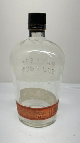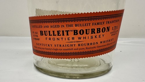 The product is an empty 1.75L bourbon bottle from Bulleit, a well-known brand of whiskey. The bottle is clear in color and is specifically designed for liquor, making it a collectible item for enthusiasts of bourbon and whiskey. This large bottle size is ideal for those looking to display or collect unique liquor bottles, with this particular one being a featured refinement Bourbon Bottle.
