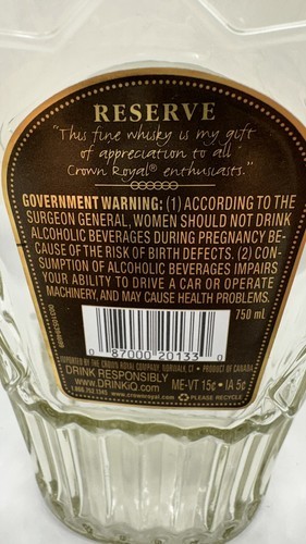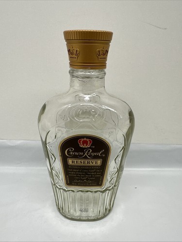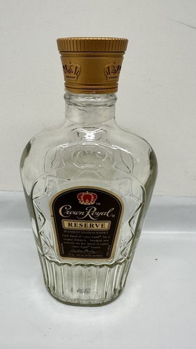 The product is a Crown Royal Special Reserve Canadian Whiskey bottle that is empty and comes with a cap. It has a volume of 750ml and a clear color. This liquor bottle is a collectible item and falls under the modern category of bottles from 1900 to now. It is a distinctive piece that showcases the brand of Crown Royal, known for its quality Canadian whiskey. This bottle is a great addition to any liquor bottle collection or could be repurposed as a decanter for display.
