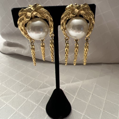 Vintage Goldtone & White Faux Pearl Clip on and similar items