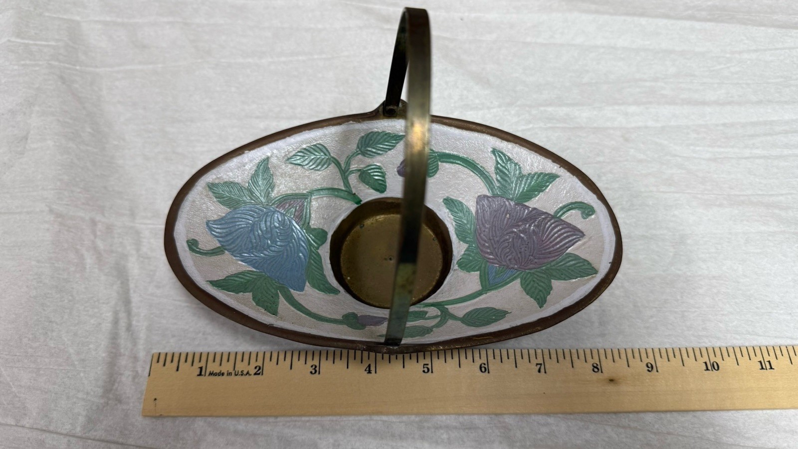 Roger +Son Brass &Enamel Cloisonne handled trinket bowl BEAUTIFUL