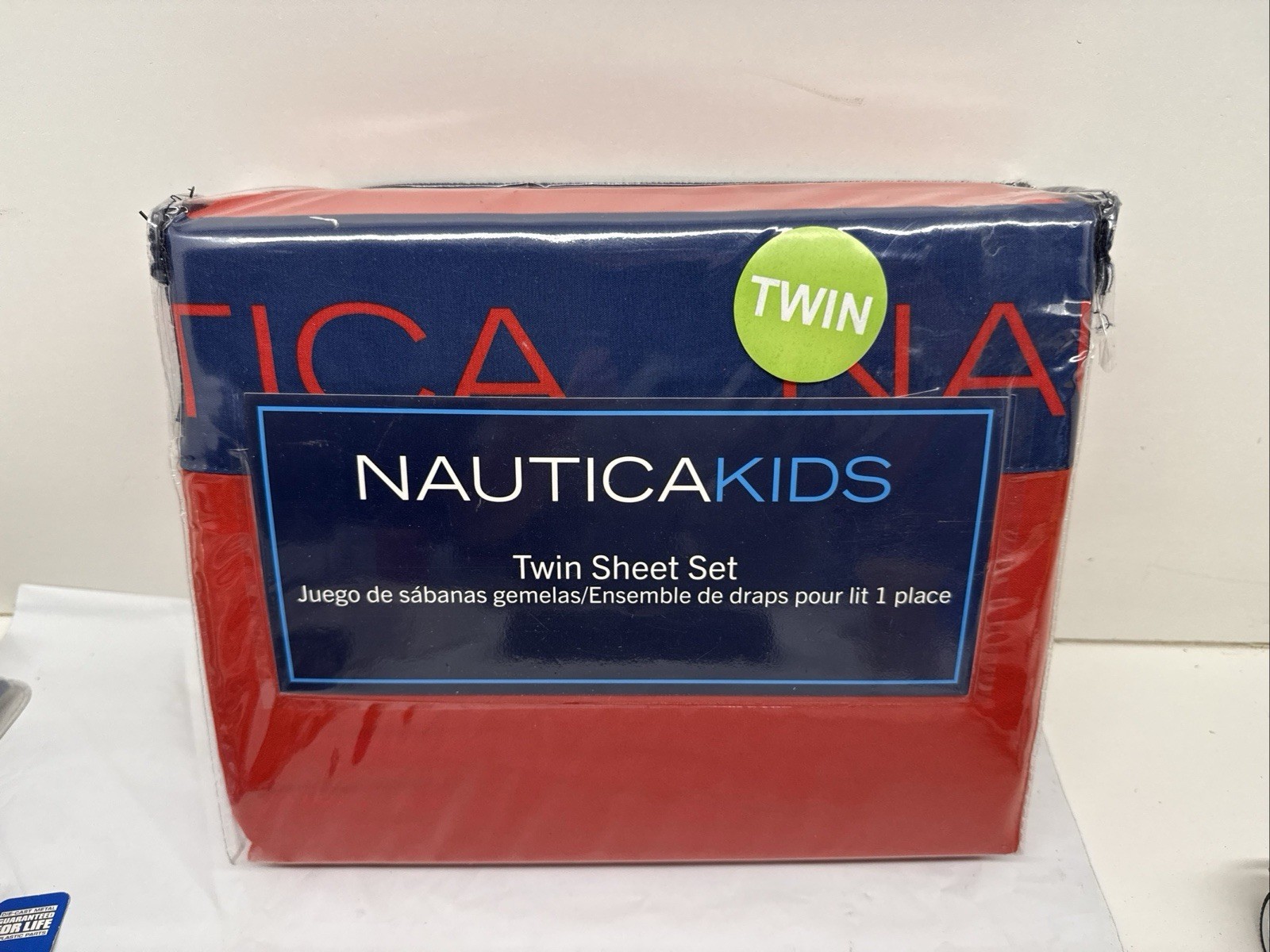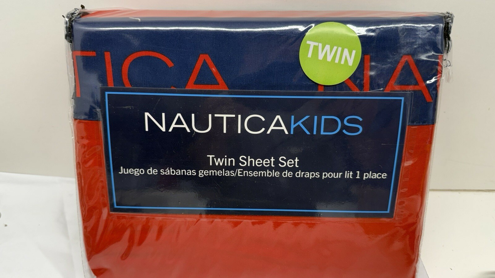NEW NAUTICA KIDS COLORBLOCK RED+NAVY BLUE CUFF BED SHEET SET 100% POLYESTER