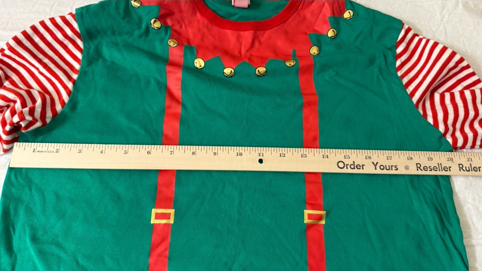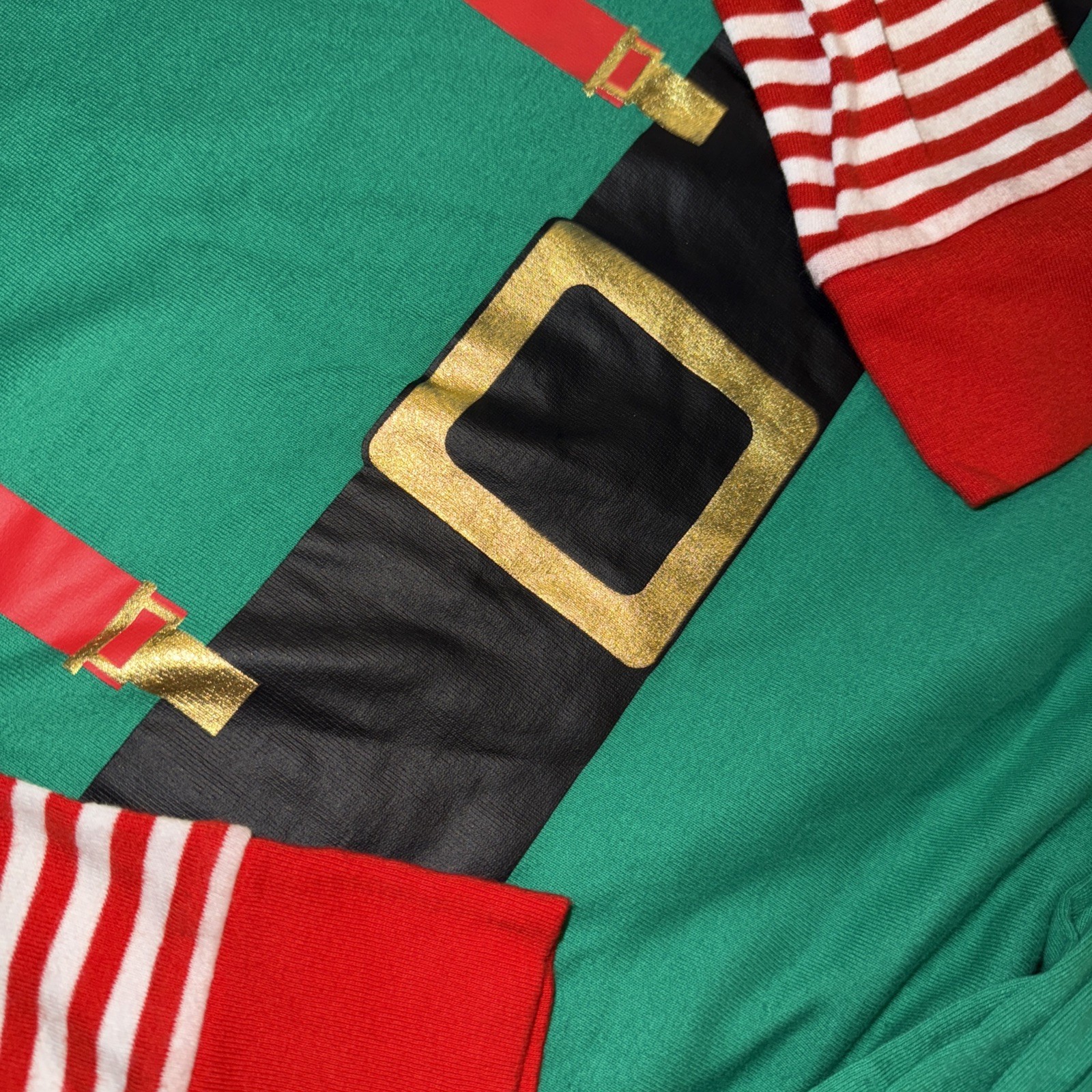 The Wondershop Pajama Set in size L features a festive design perfect for the holiday season. The green and red Christmas Elf pants paired with a matching top offer a fun and comfortable option for adults looking to relax in style. This unisex set is ideal for anyone wanting to add a touch of whimsy to their sleepwear collection.