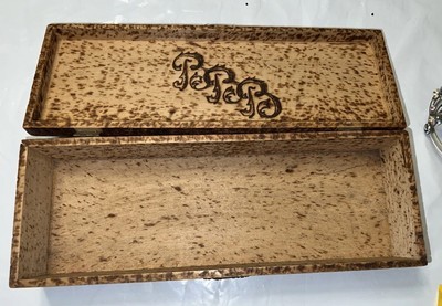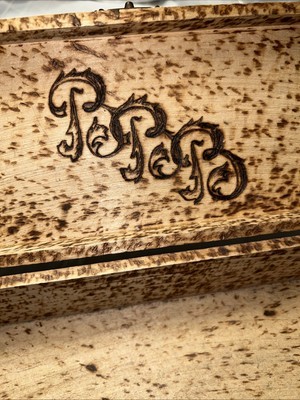 Burnt Wood Floral Design Hinged Box For Gloves Ties Trinkets Antique 1905