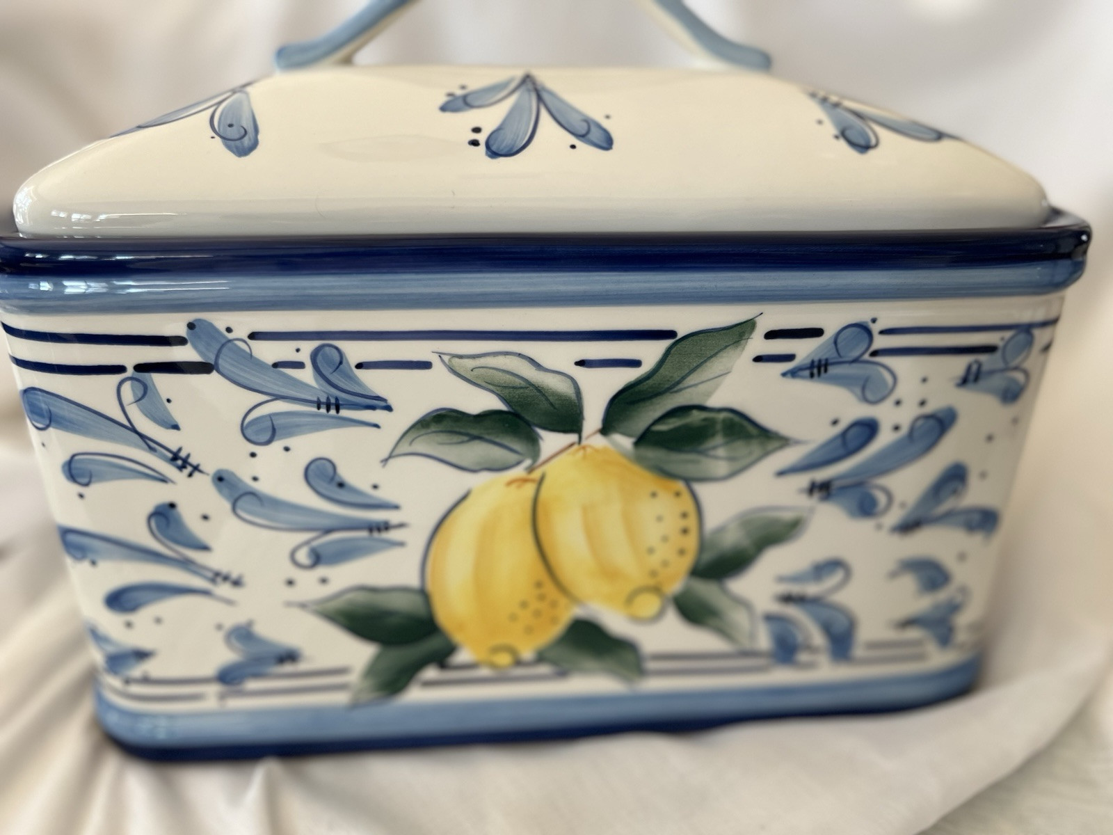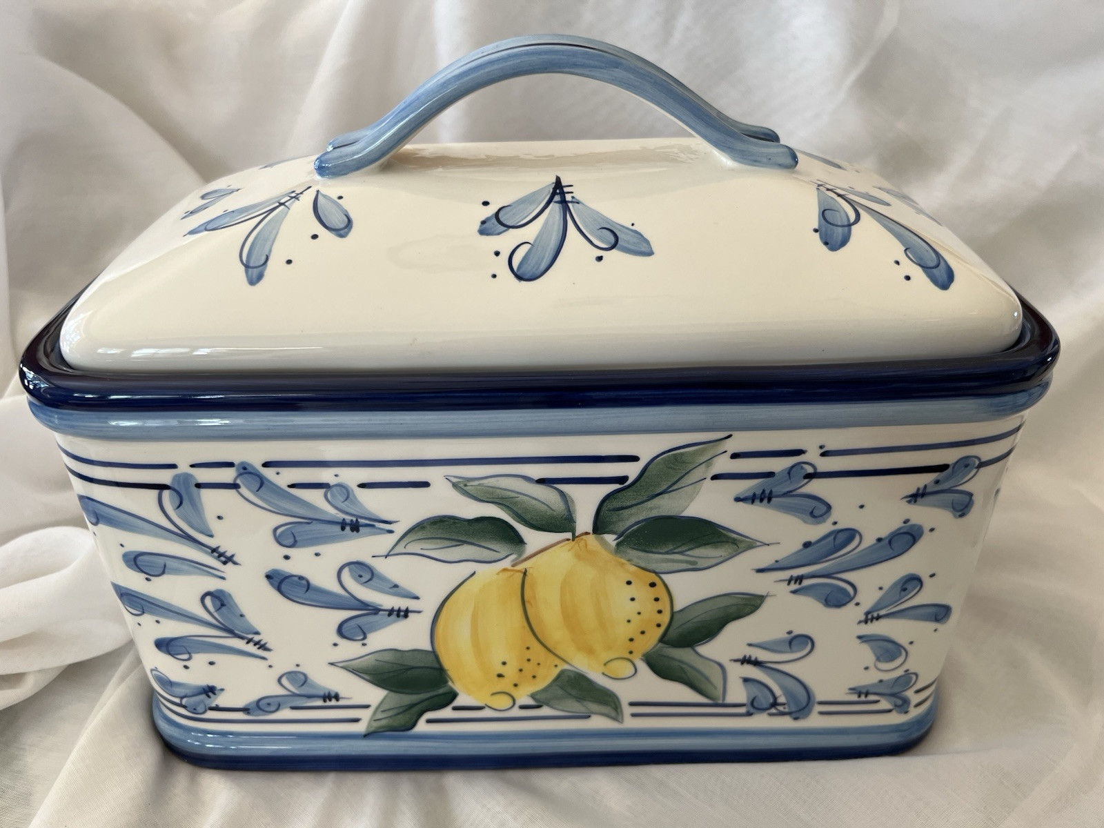 Stonelite Inspirado Blue White Lemon Design Bread/biscotti Box Seattle USA