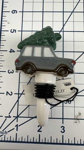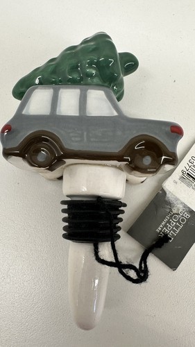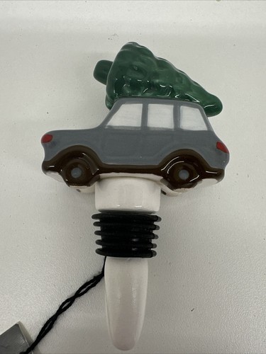 Threshold Car with Christmas Tree on the Roof Bottle Stopper, gray ceramic.