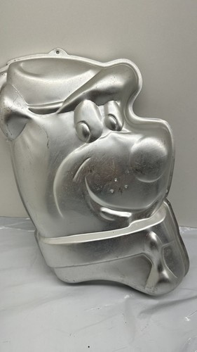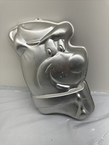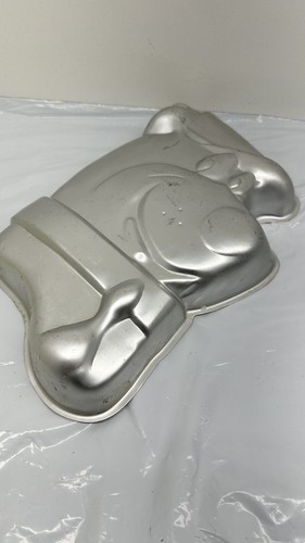 This vintage Wilton cake pan features the iconic Yogi Bear head shape with a silver color and made of durable aluminum material. The pan measures 15 inches in height and 9.5 inches in width, with a 2-inch depth perfect for baking cakes.