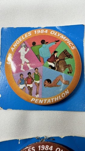 VTG 1984 LOS ANGELES OLYMPICS 2” Buttons Swimming Cycling Rowing Pentathlon