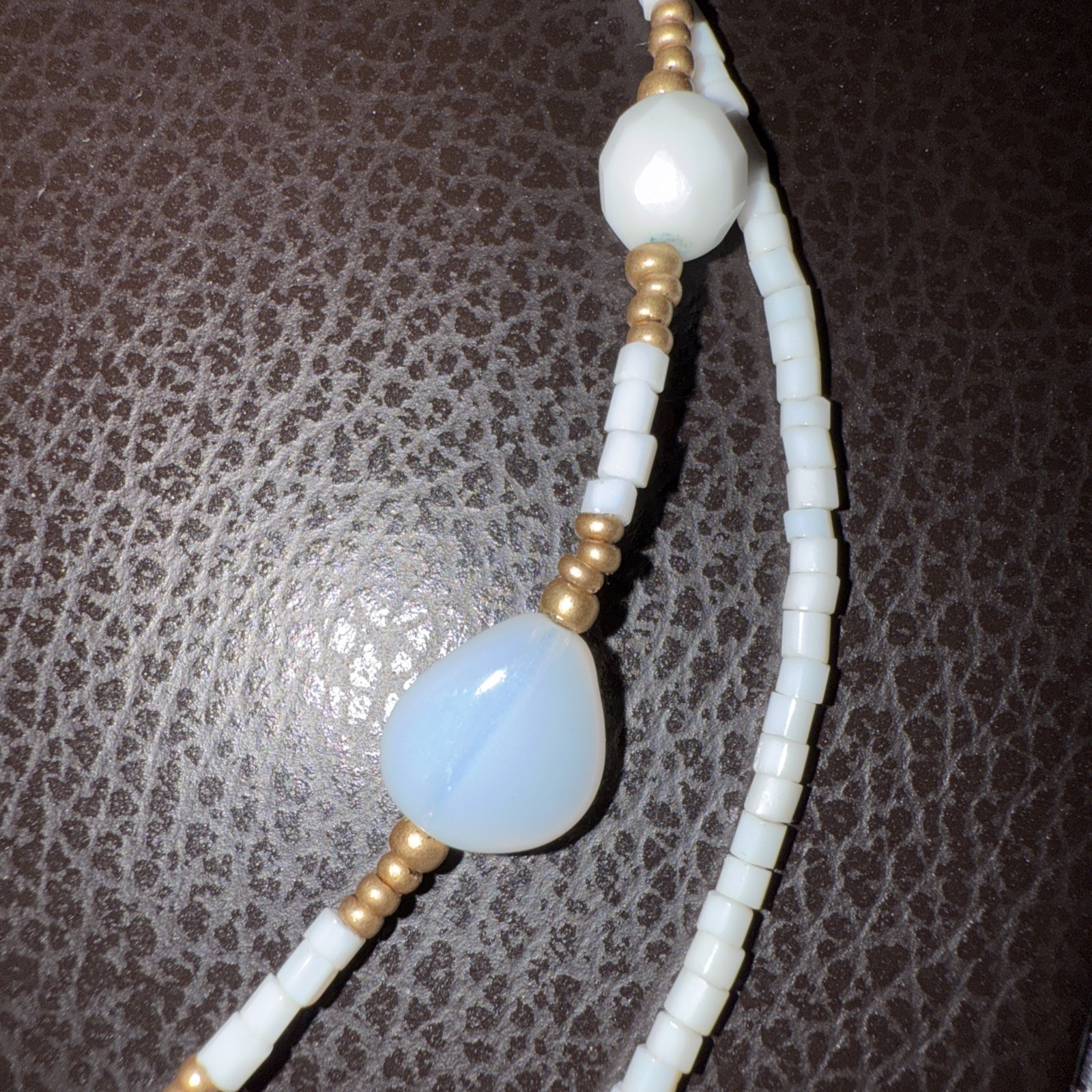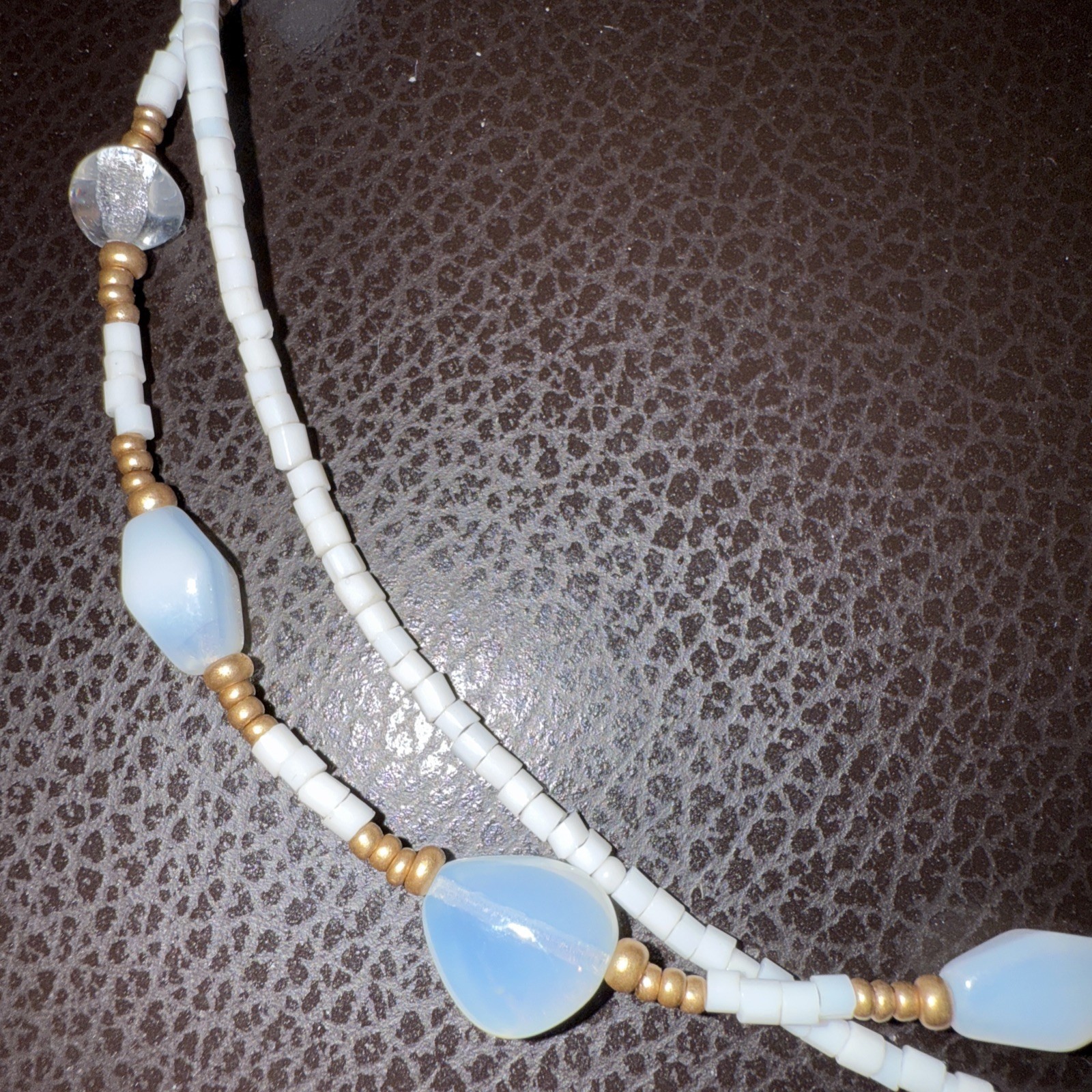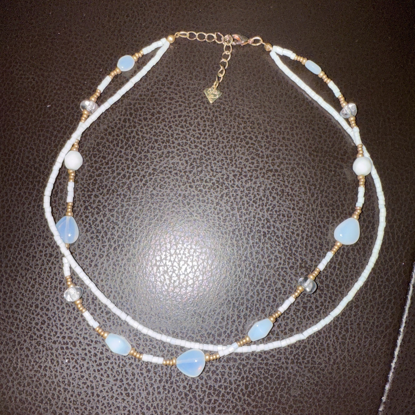 COOKIE LEE Two Strand White, Iridescent & Gold beaded necklace 18”