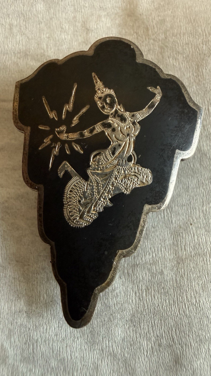 Antique Sterling Silver Enamel Thailand dancer Pin Brooch.