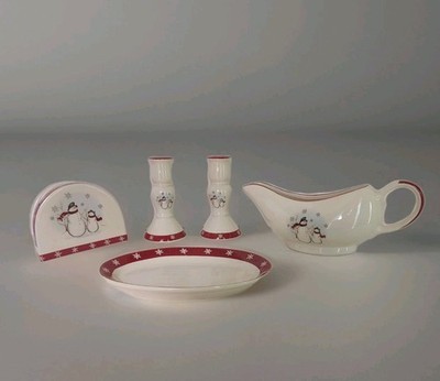 Royal Seasons 5 Piece Stoneware Christmas Snowmen Holiday Vintage Accessory Set