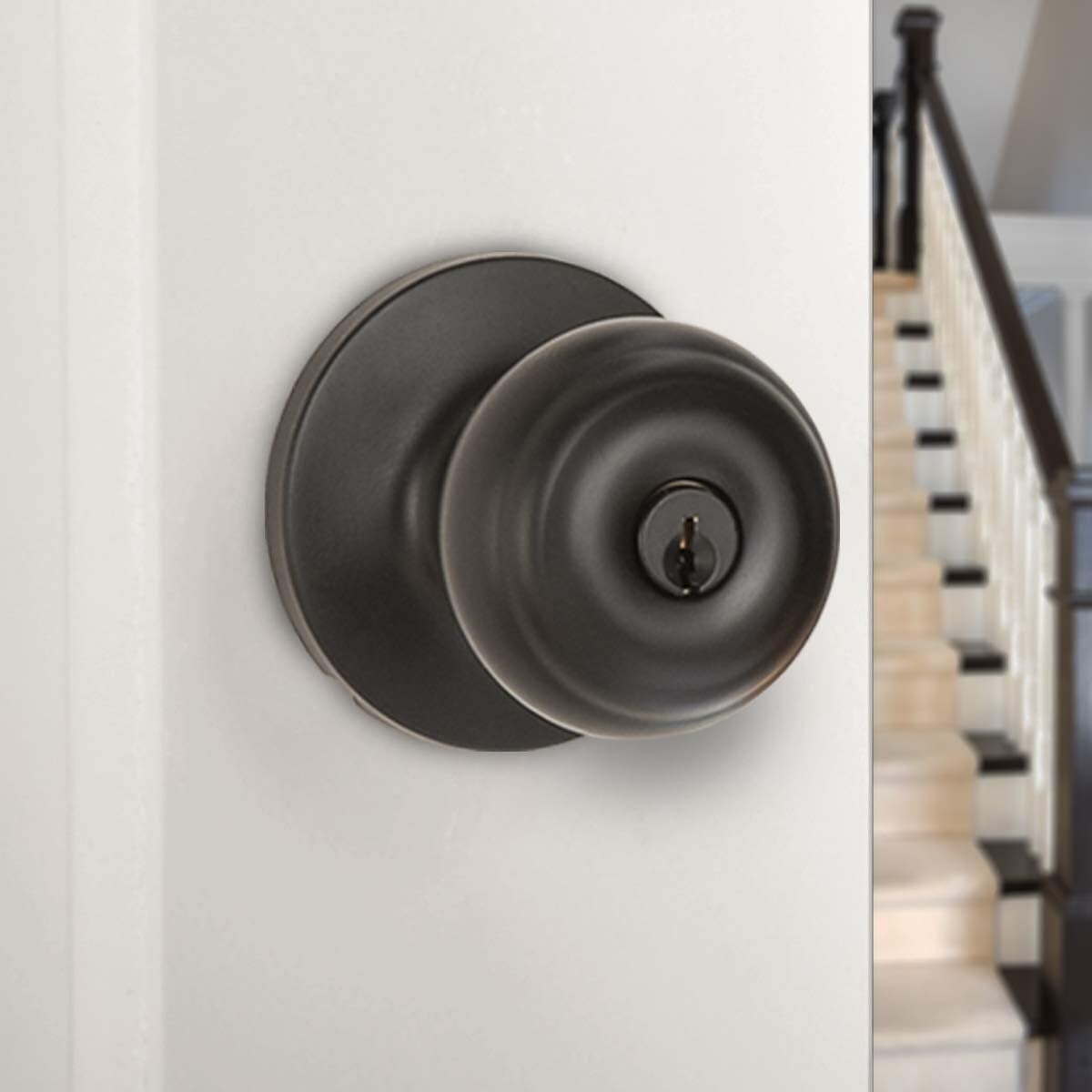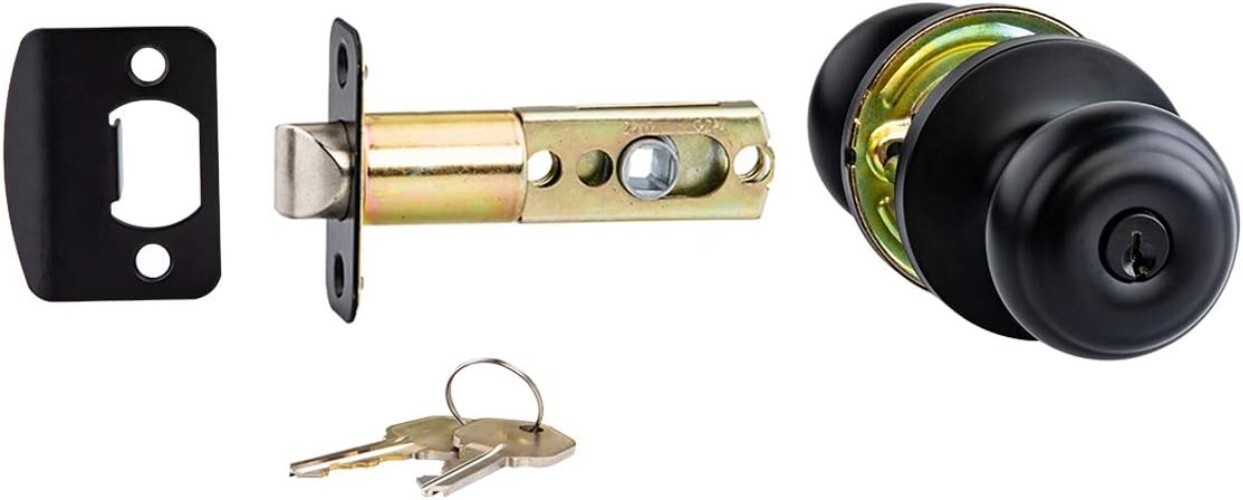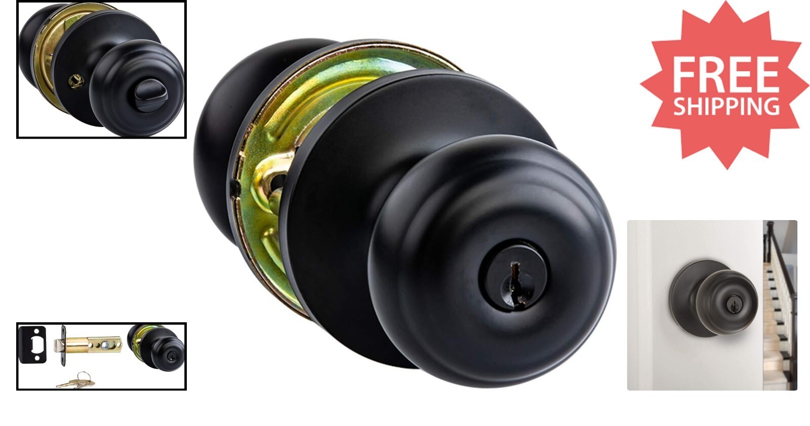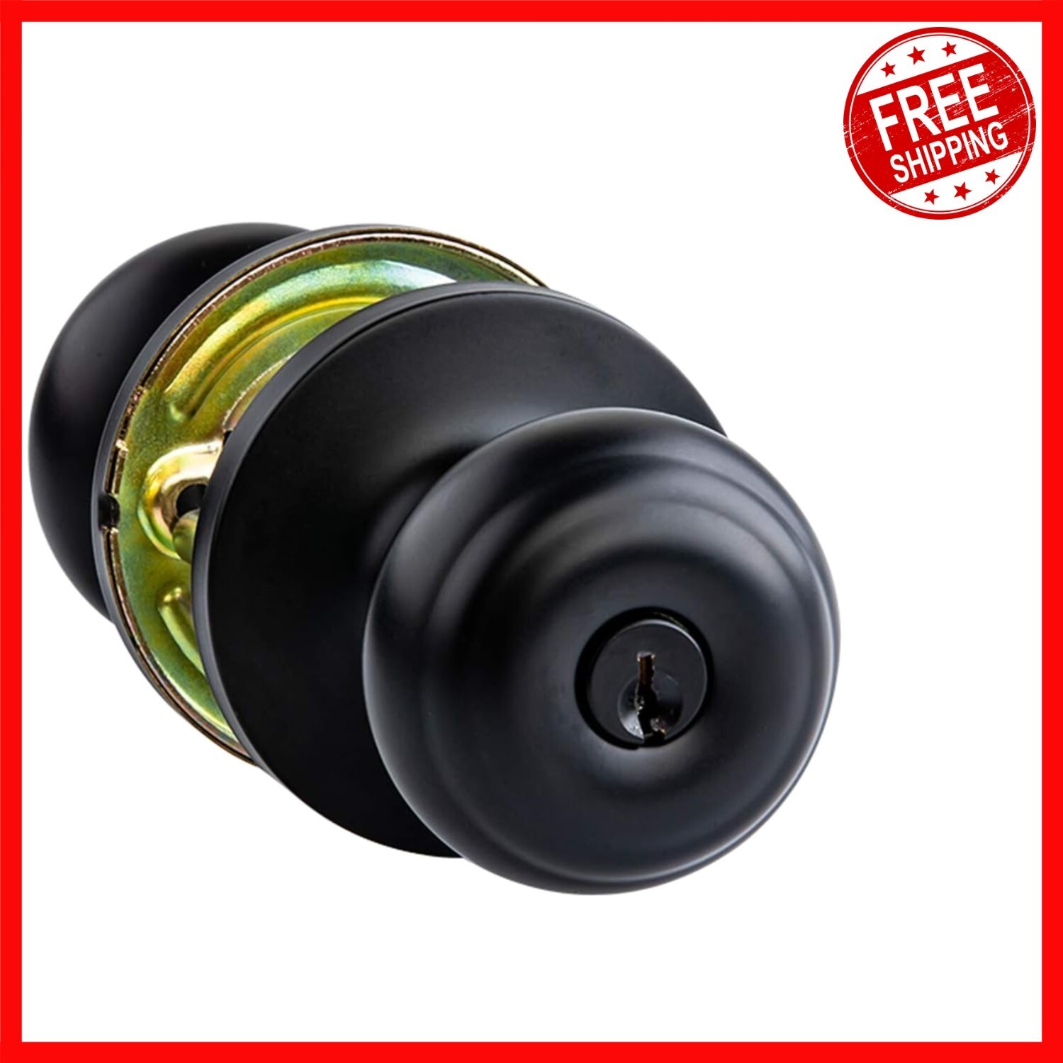 Classic Matte Black Door Knob with Key Lock - Durable Alloy Steel Design