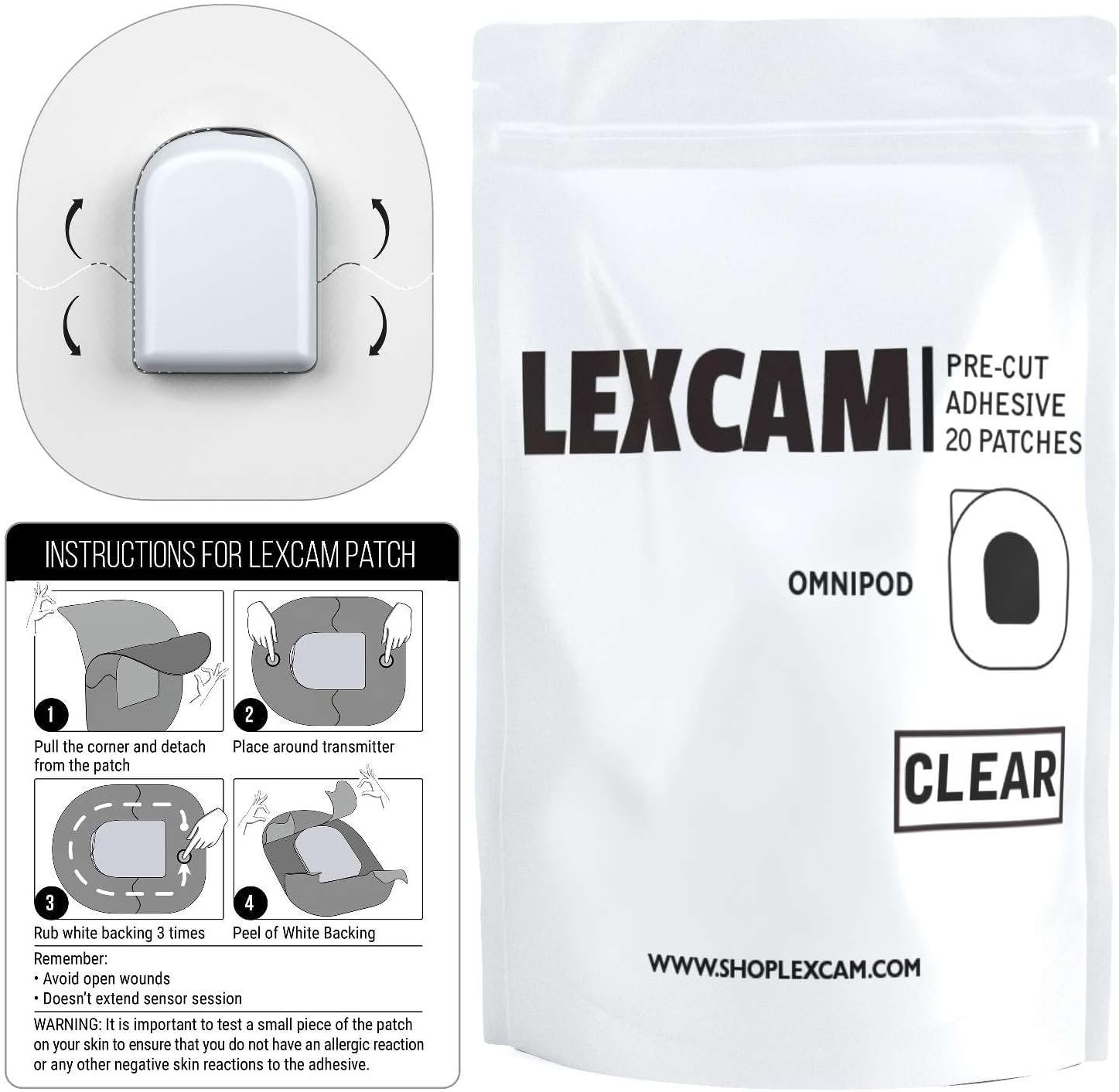 Discover the value of Lexcam Omnipod 5 Patches, designed to provide waterproof and sweatproof protection for your device, ensuring accurate functionality even during intense activities or in wet conditions. Crafted with hypoallergenic, latex-free materials, these patches are gentle on sensitive skin?although we recommend testing a small area first. Easy to apply and comfortable to wear, Lexcam patches stay securely in place through exercise, swimming, and sauna sessions, preventing dislodgement and maintaining continuous monitoring. Combining comfort, durability, and style, Lexcam Patches are a reliable choice for your glucose monitoring needs.