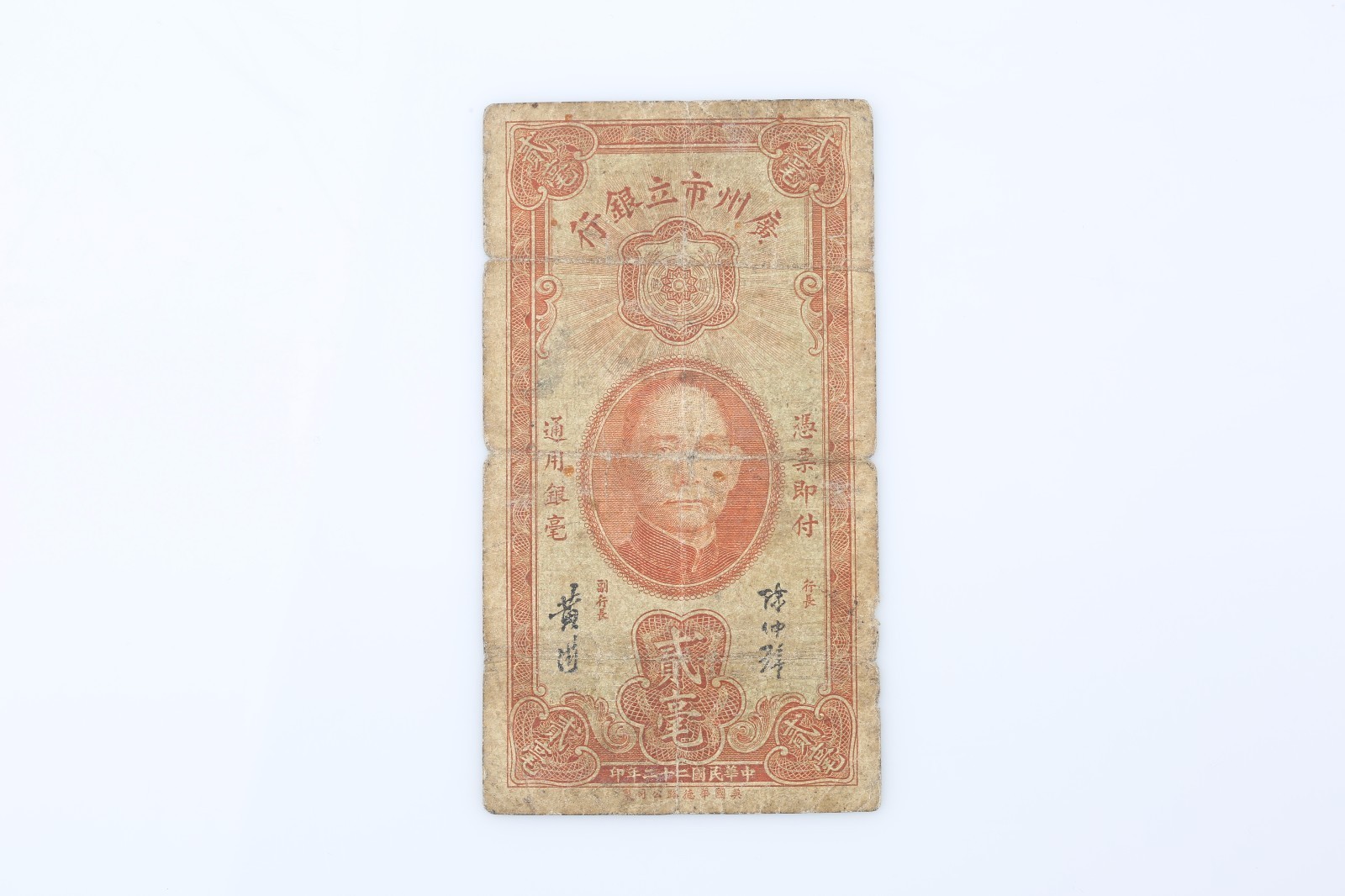 Nota cinese da 20 centesimi del 1933