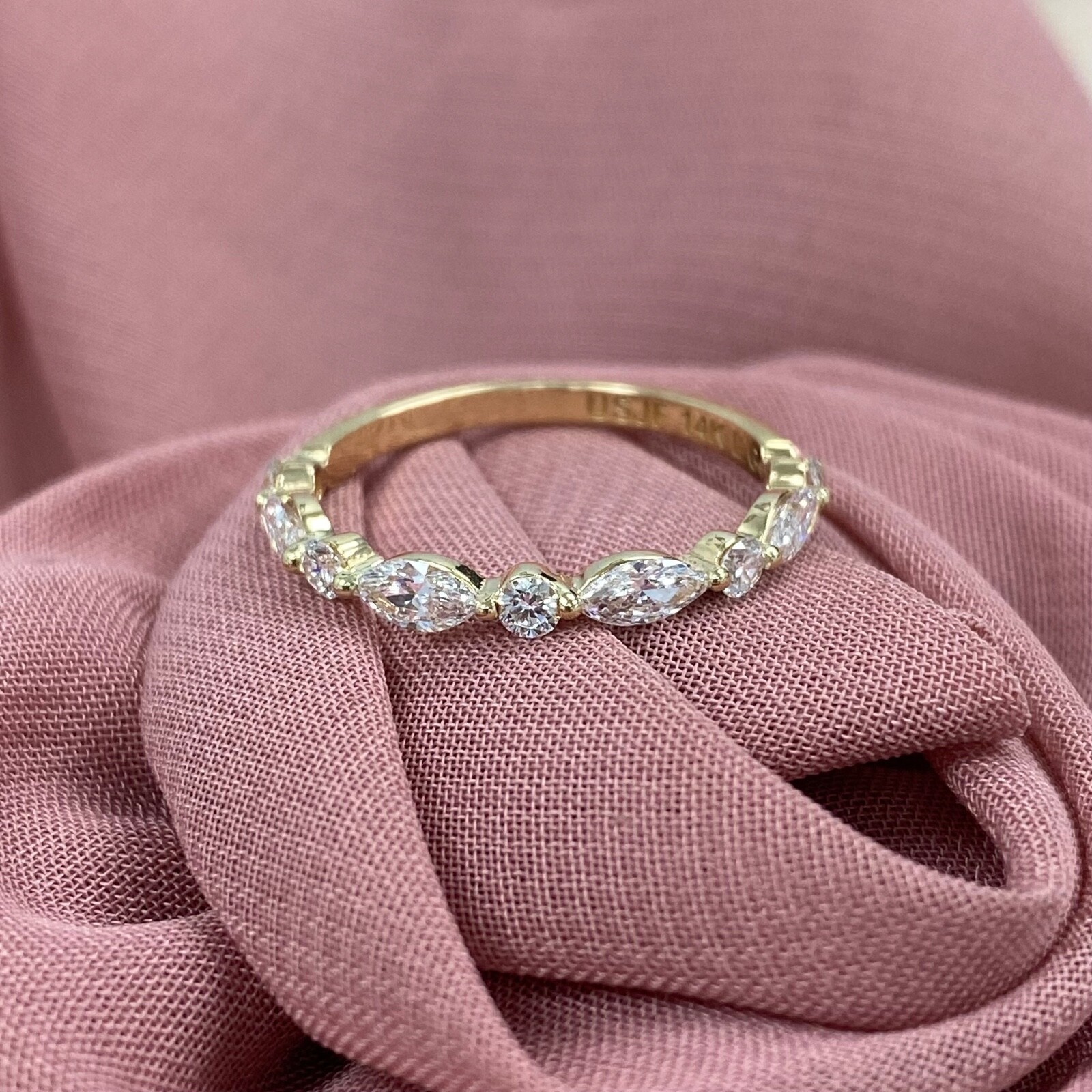 0.70 Ct Round and Marquise Alternating Lab Grown Diamond Wedding Ring Band 14k