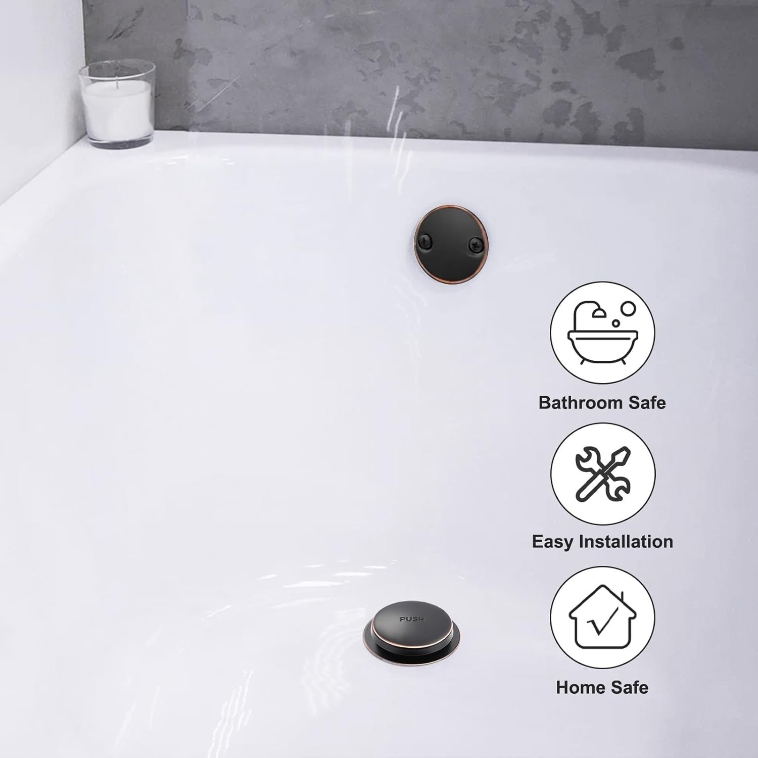 : Tub drain kits are made of high-purity solid brass and stainless steel and designed with a corrosion-resistant finish, providing high strength and durability for long-term use in a bathtub inside