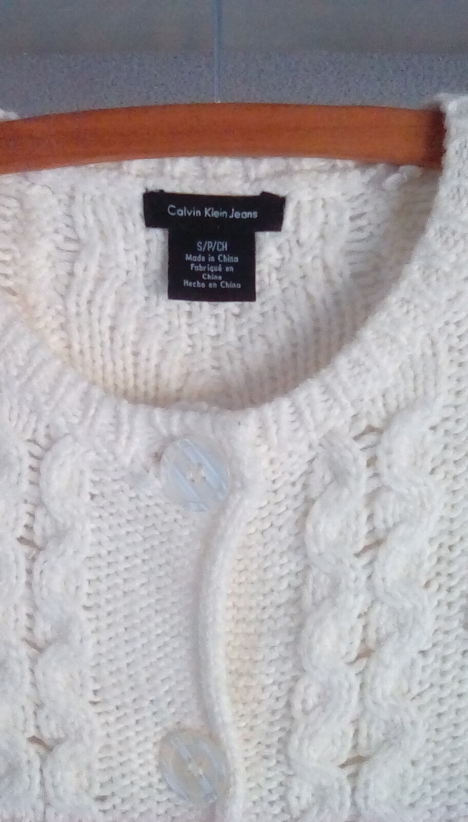 Calvin Klein Jeans White Cardigan Cable Sweater Size S/P/CH