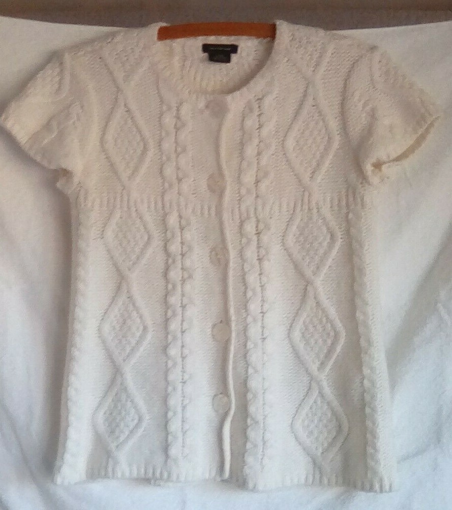 Calvin Klein White Cardigan Cable Sweater Short Sleeve Size S/P/CH EUC