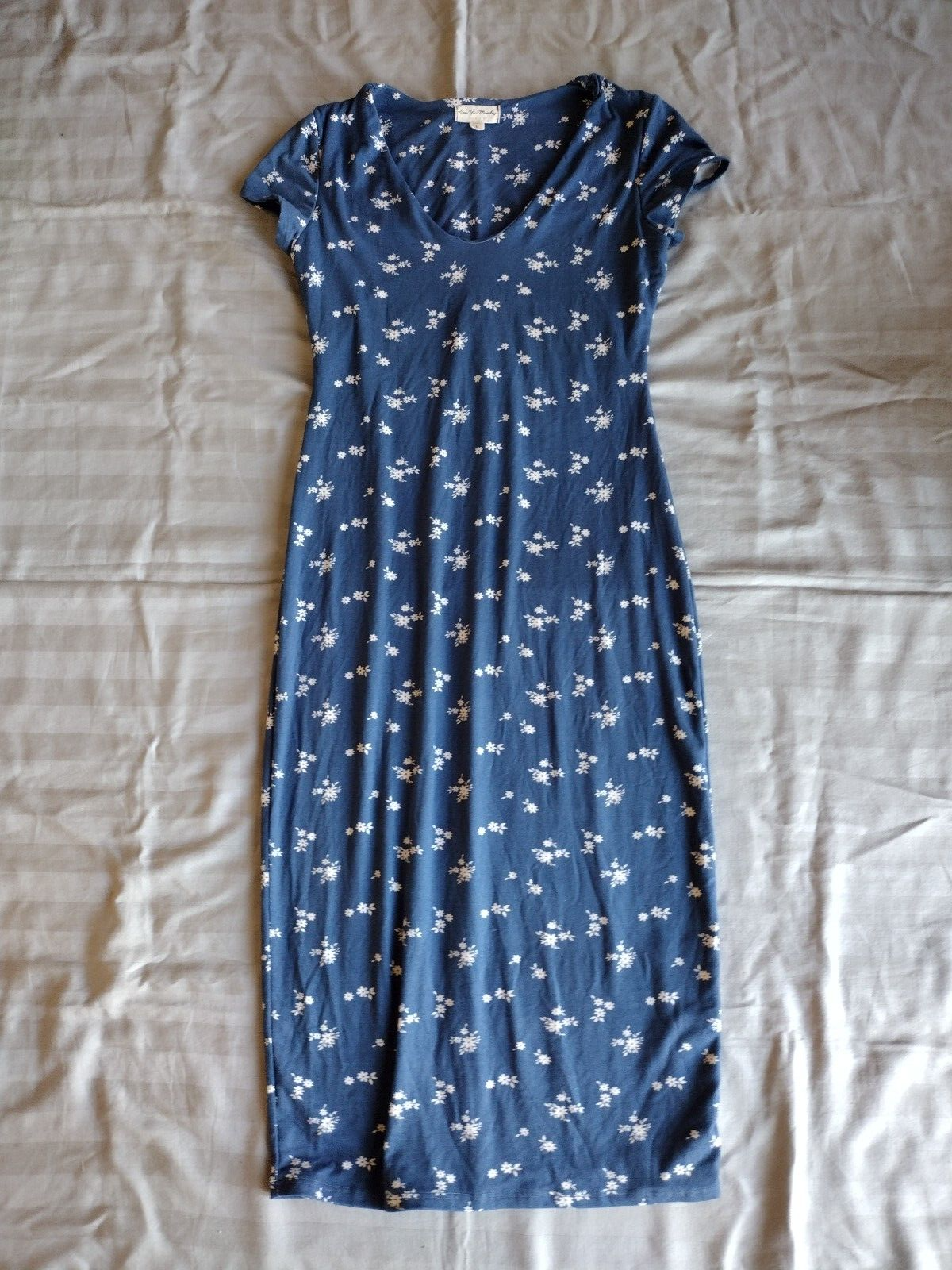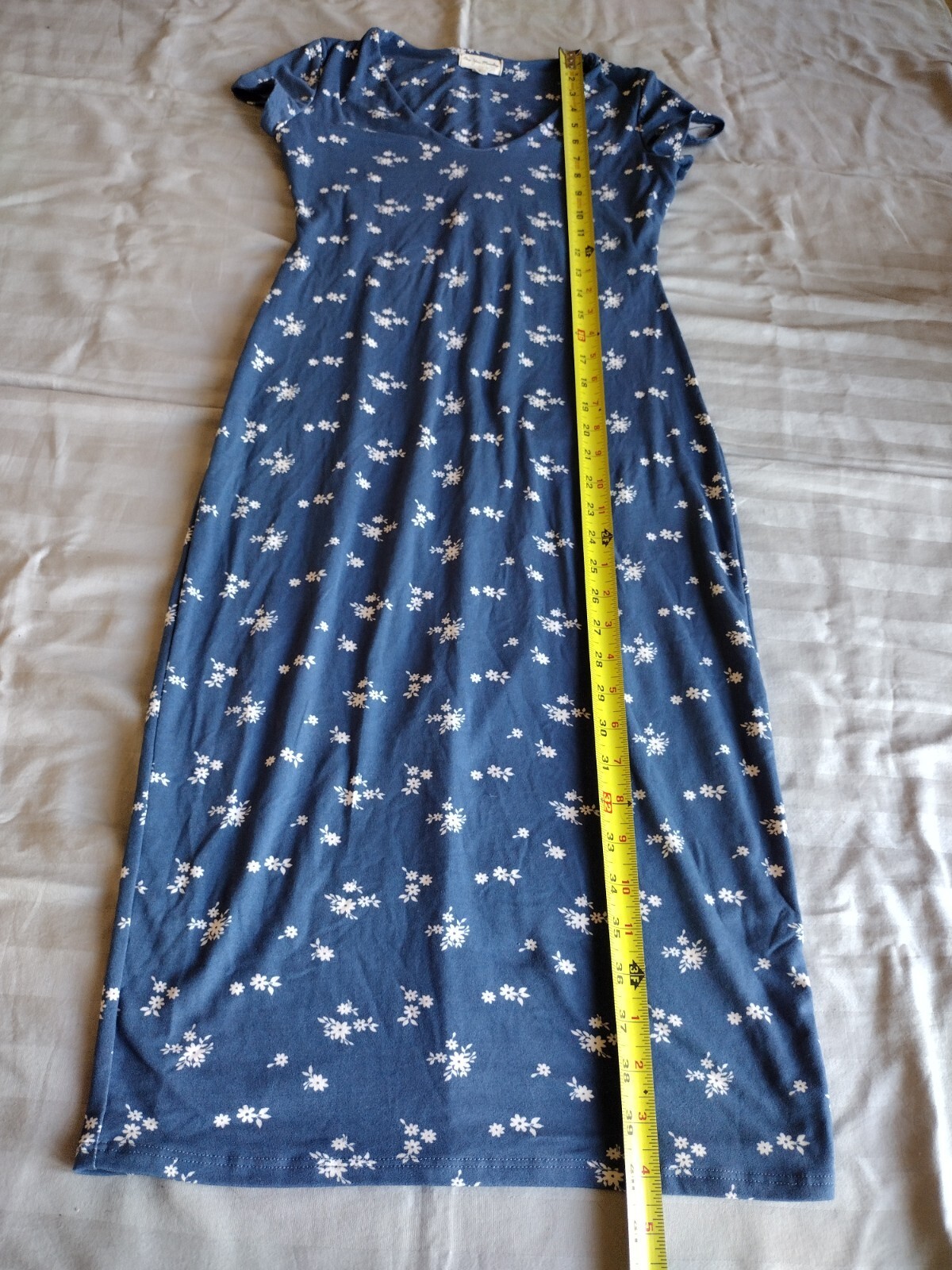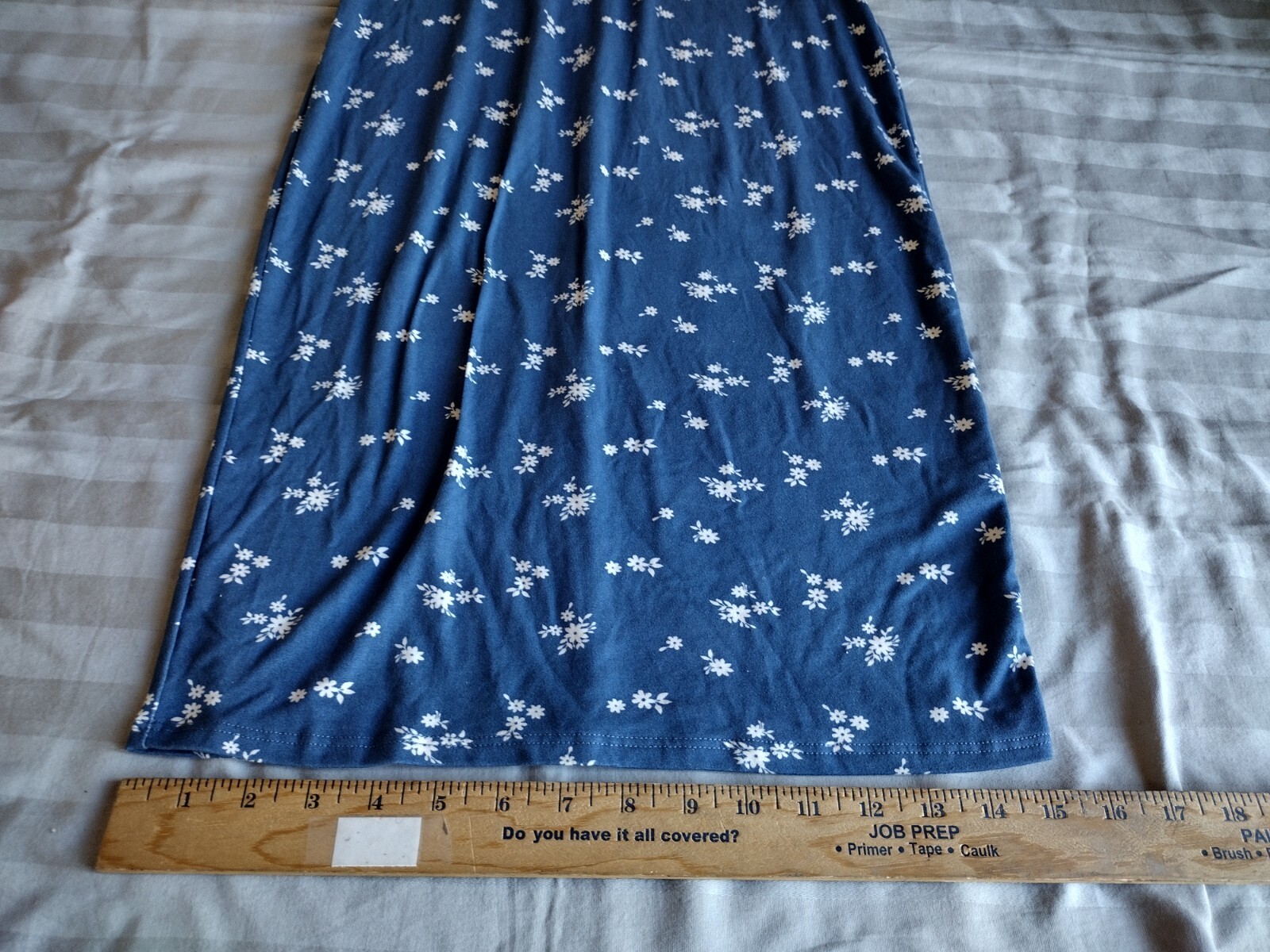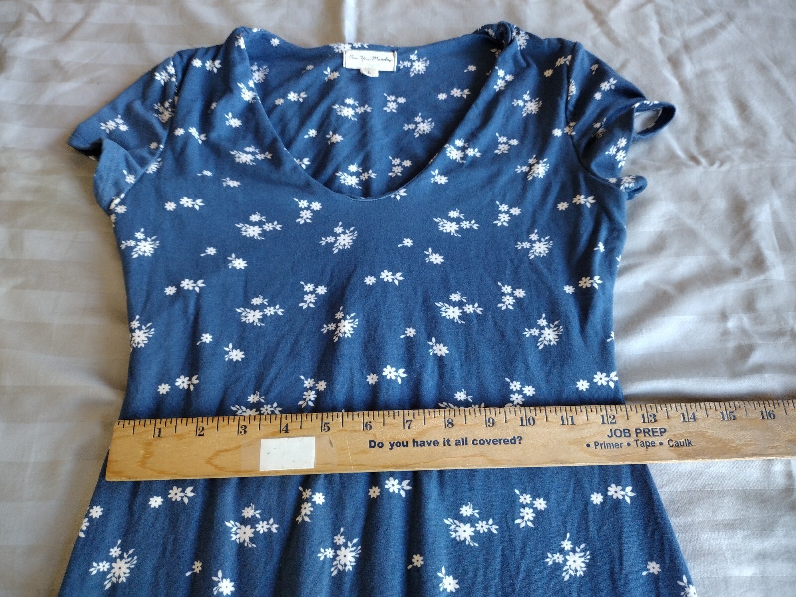 See You Monday Women Blue White Floral Short Sleeve Round Neck Dress Size L EUC