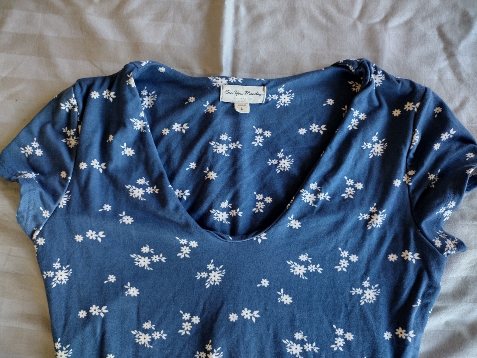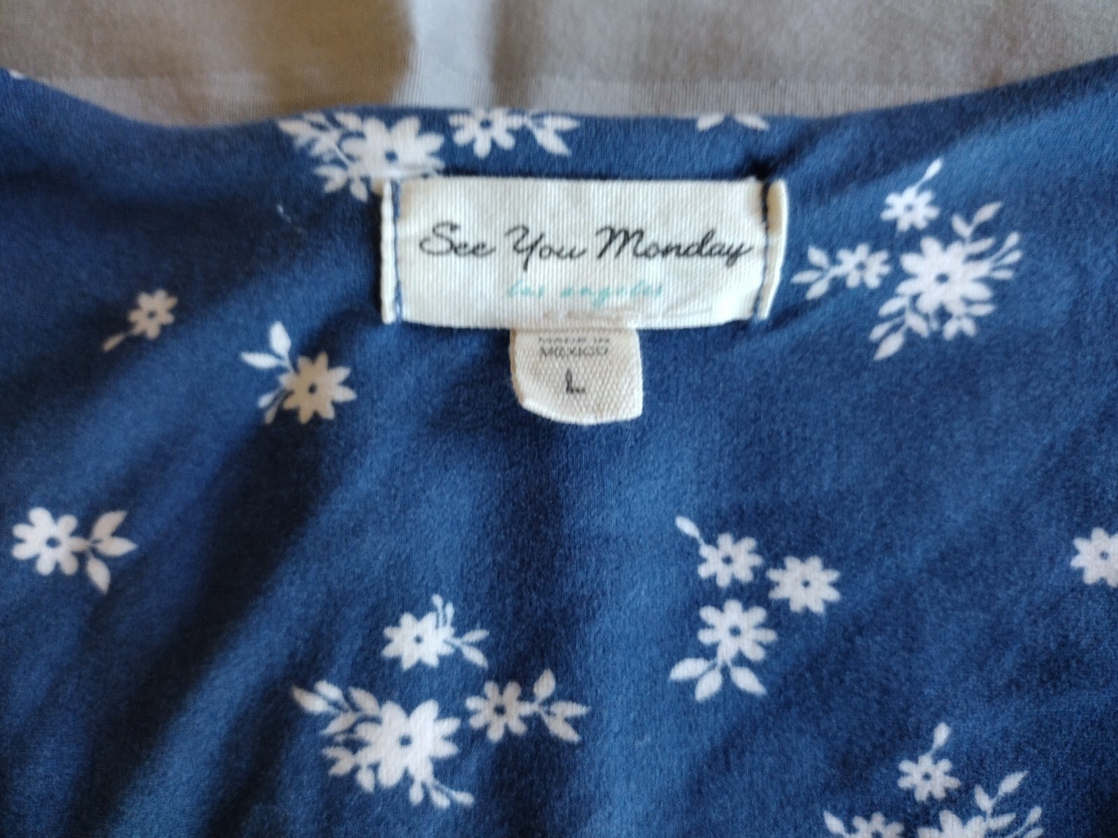 This gorgeous See You Monday dress is an absolute must-have for any fashion-forward woman. The blue and white floral pattern is both fresh and feminine. The dress is in excellent used condition, ensuring that you'll look and feel your best when you wear it. Designed for women in size L, this dress is perfect for any occasion, whether you're heading to the office or out for a night on the town.