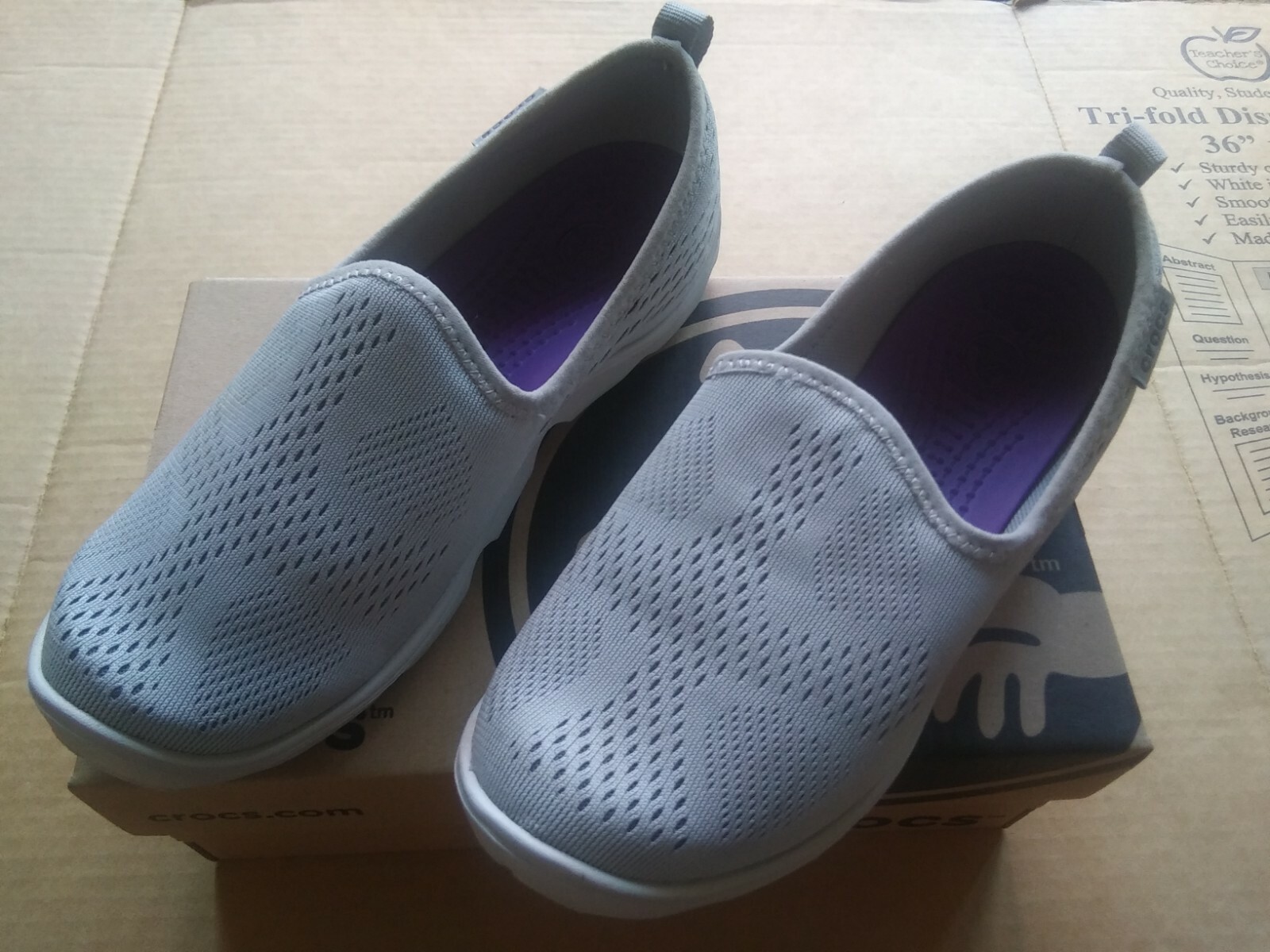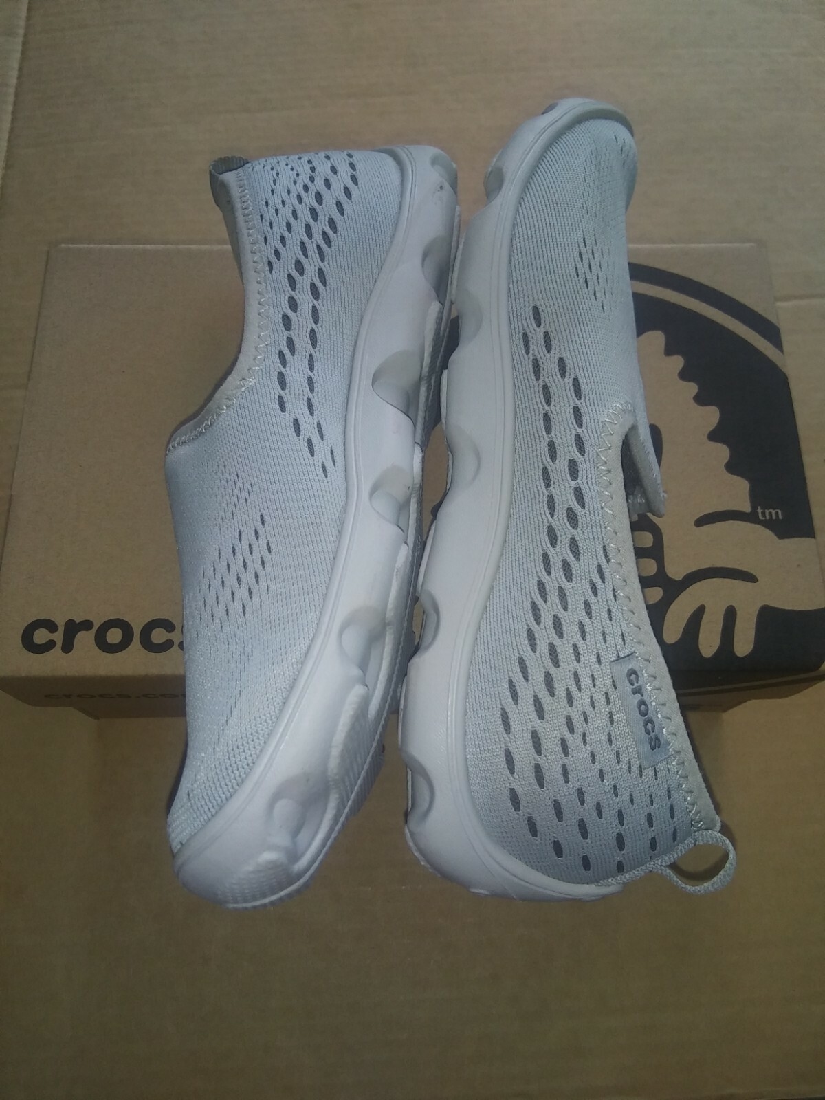 Crocs Women DuetBusyDayXpress MeshSkimmer Shoe US 5 Light Grey Graphite EUC