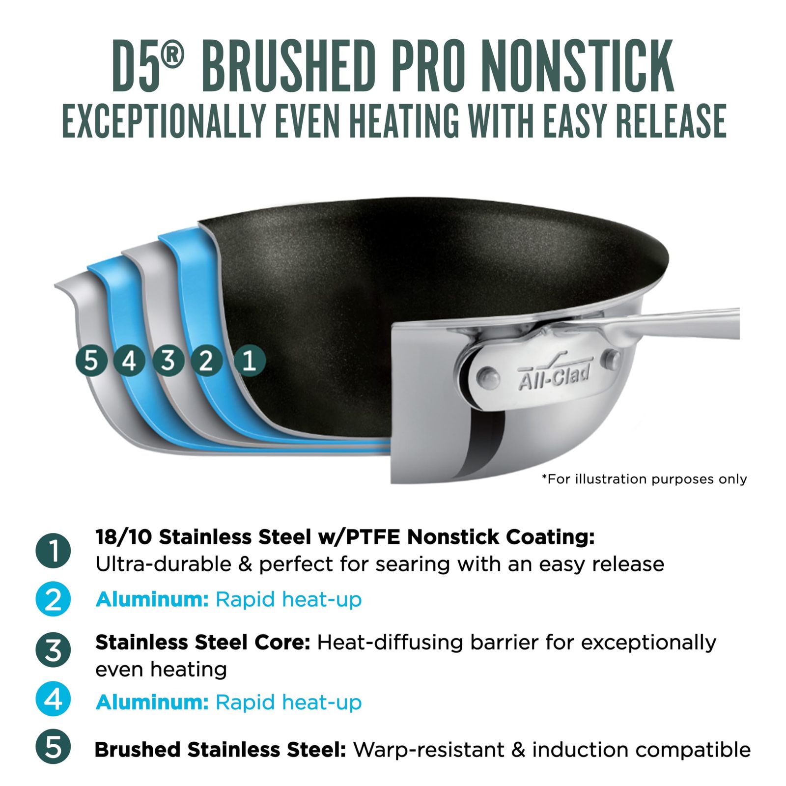 All-Clad D5 10 Inch Brushed Stainless Steel Pro Non Stick Frying pan, 5-Ply Stai
