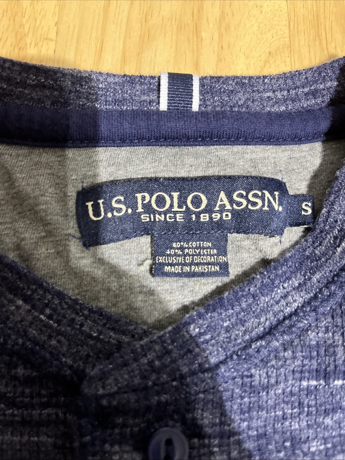 U.S.Polo ASSN Shirt Men's Small Blue Henley Striated Long Sleeve