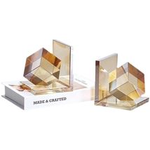 Product description: Transform your shelves with the Interoknack Modern Geometric Crystal Bookend, a stunning piece of functional art for your home or office. This contemporary amber acrylic cube creates a striking visual statement while providing practical support for your books and collectibles. Each single bookend measures 4.7 x 4.3 x 4.7 inches and features a transparent design that catches light beautifully, adding dimension and sophistication to any space. The premium clear amber material creates a warm, inviting glow while the geometric shape offers a modern, architectural element to your decor. Perfect for minimalist interiors, executive offices, or as a distinctive gift for design enthusiasts. The durable construction ensures your books remain upright while the artistic form elevates your entire display. Combine multiple bookends for a customized arrangement that's both practical and visually impressive. Books not included with this singular statement piece that balances form and function with elegant simplicity.
