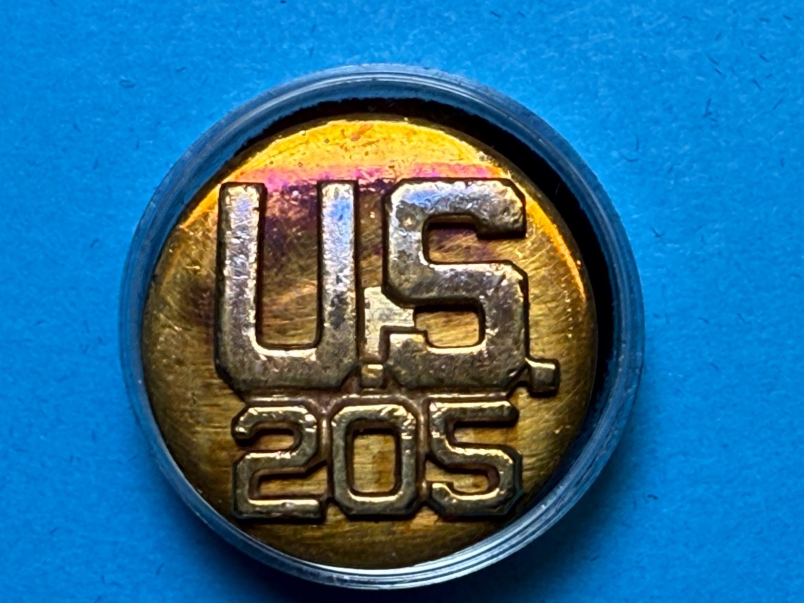 CIRCA 1937-1943, U.S, 205th REGIMENT, COLLAR DISK, TYPE III, ENLISTED, U..S. ARMY