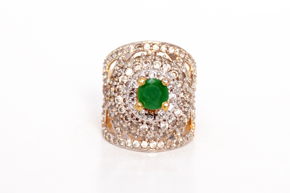Solitaire Engagement S925 Sterling Gold CZ Simulated Diamond Ring Emerald Green