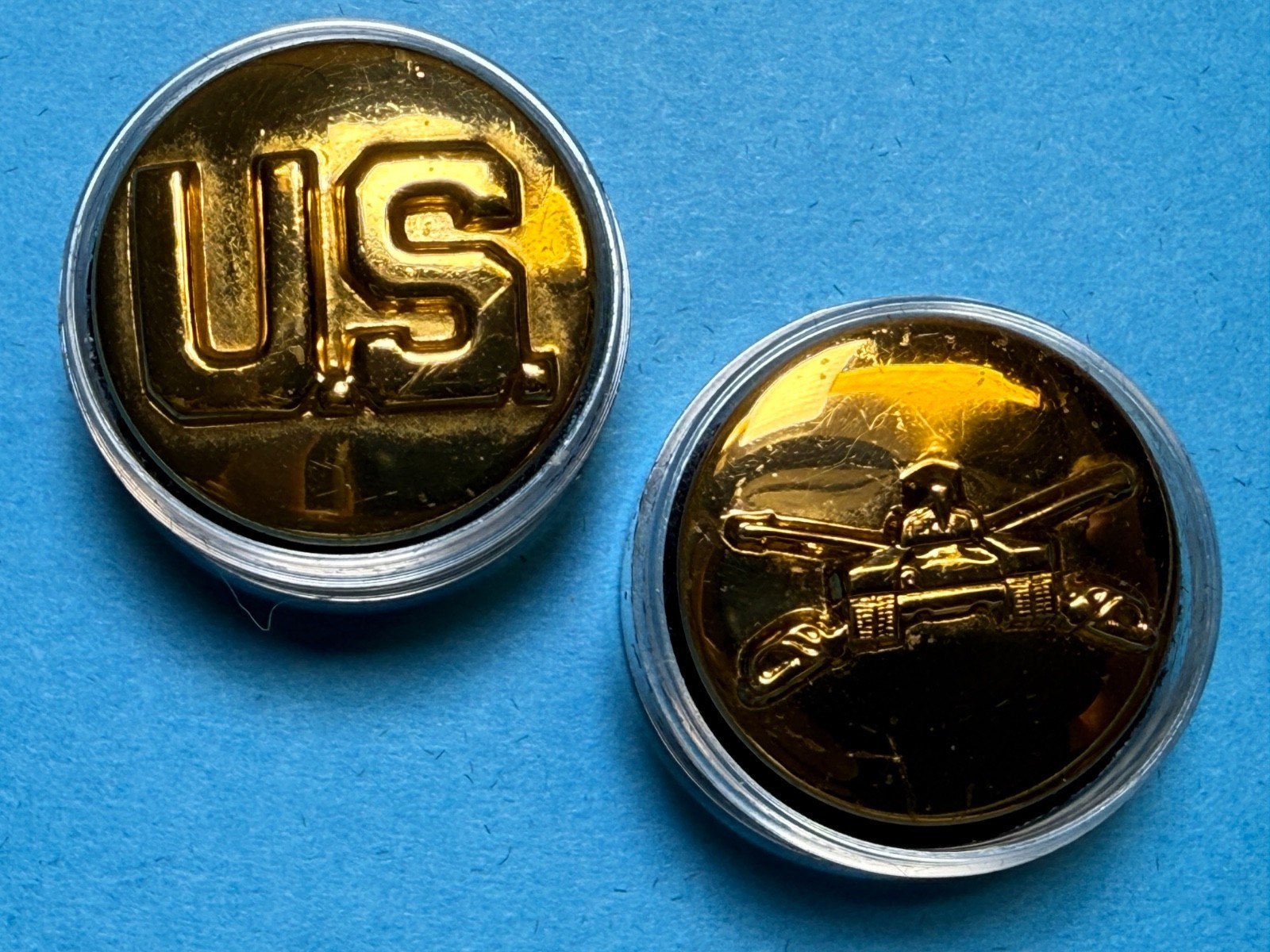 CIRCA 1942-1970, U.S. AND ARMORED CAVALRY, COLLAR DISKS, TYPE V, ENLISTED