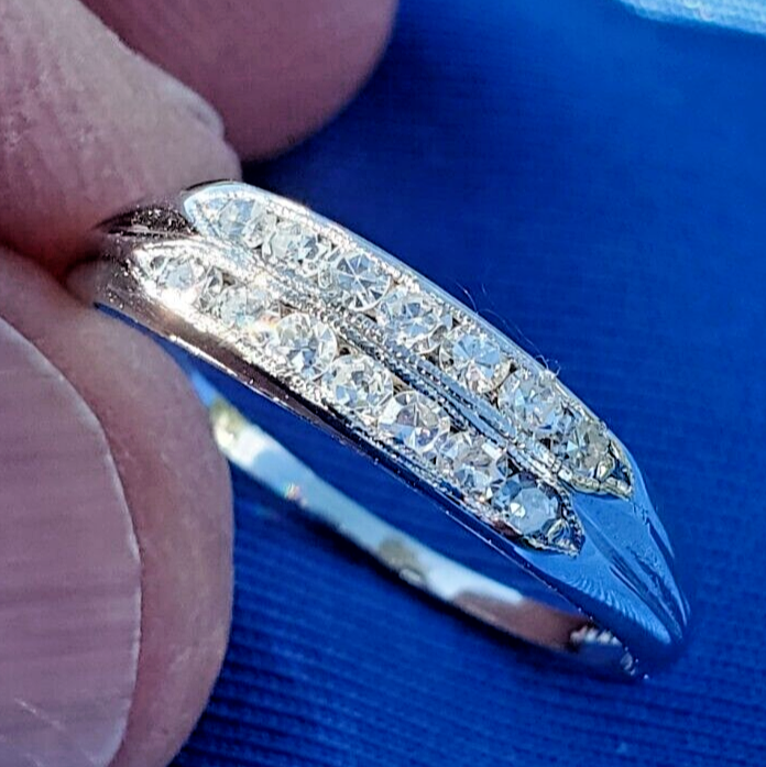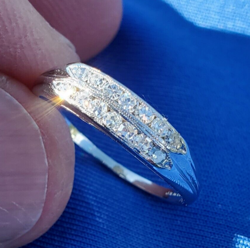 ELEGANT DIAMOND PLATINUM GATSBY ERA WEDDING RING.