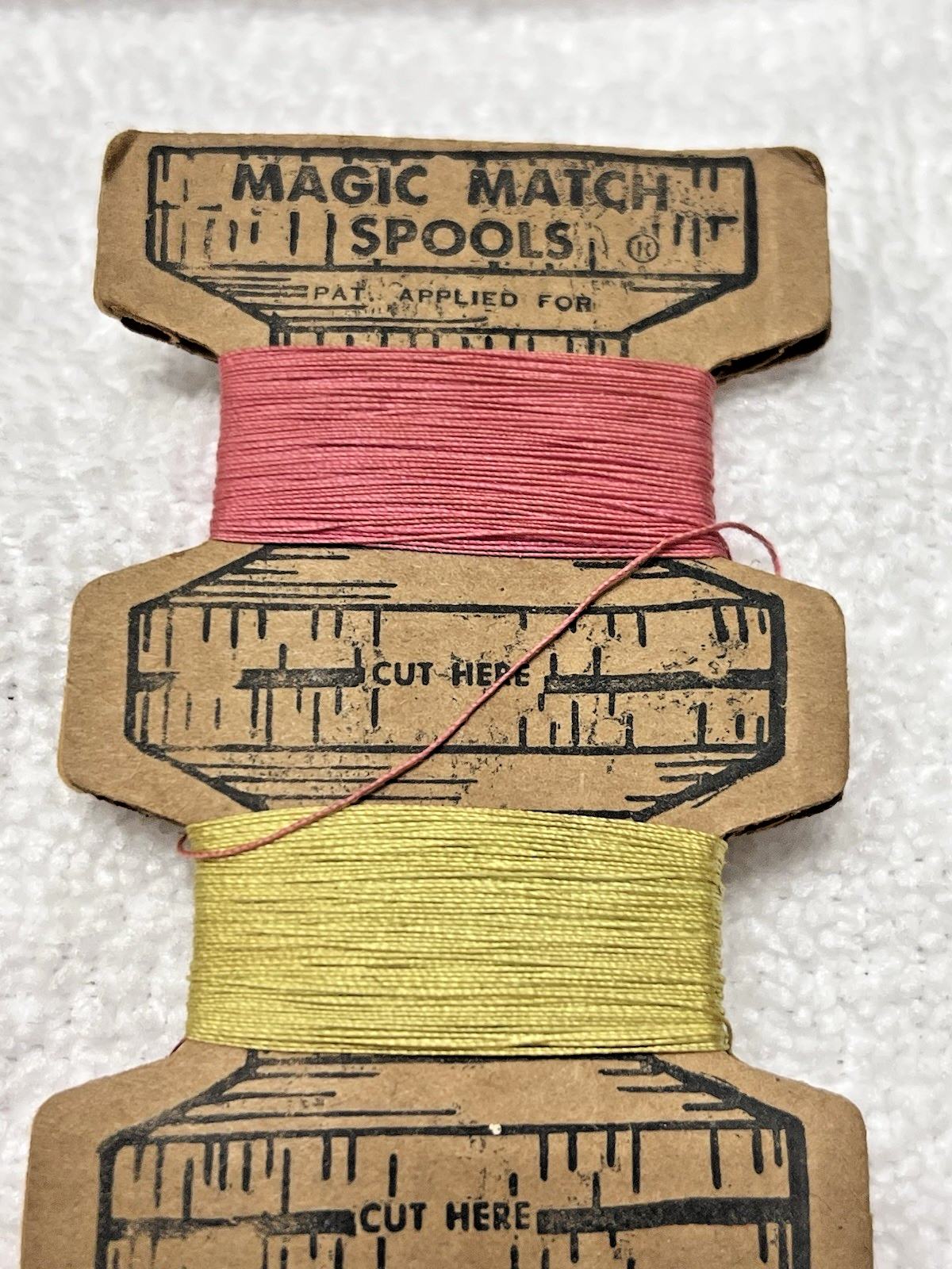Vintage Never Cut Magic Spool Thread Spools Sewing 14 7/8 x 2 1/4" They used it wo cutting it in to single spools so a fun item for a sewing collector
