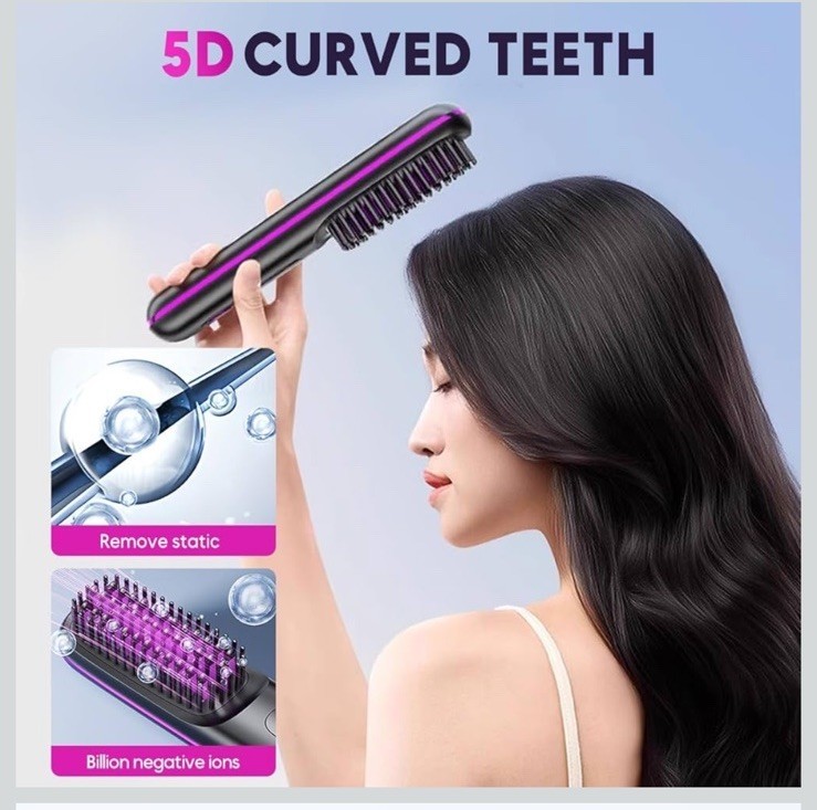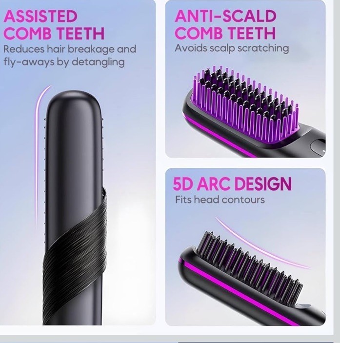 Portable Straightener Brush - Gobrush Pro Cordless Mini Hair Straightener Com....