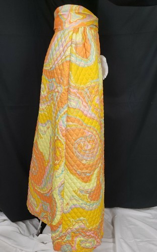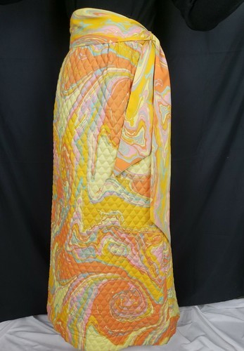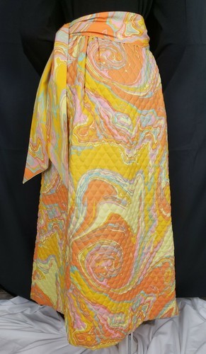 Vtg Quilted Maxi Skirt Sz 10 Park East by Swirl Mod Op Art Bold Orange Oil Slick
