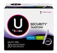 U by Kotex Security Tampons 15 Super 15 Regular 30 Count Total Multipack New.
