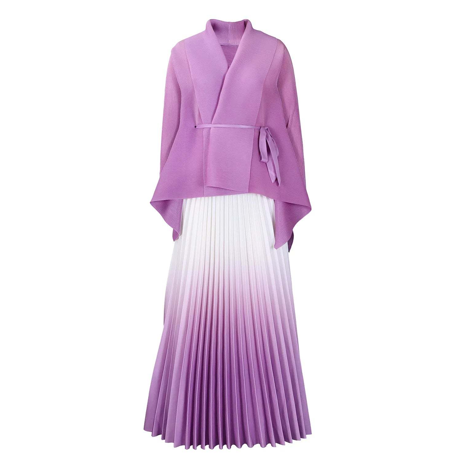 Autumn Large Size Fashion Elegant Bat Sleeve Top Gradient Color Skirt Two-Piece