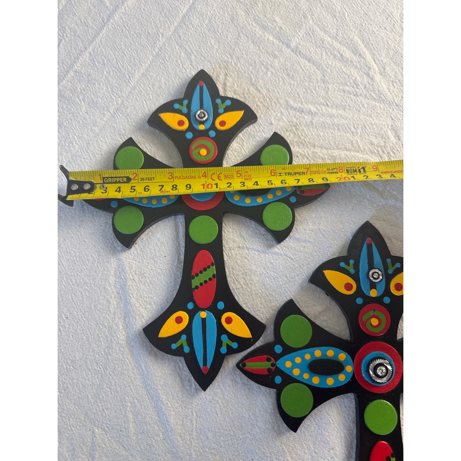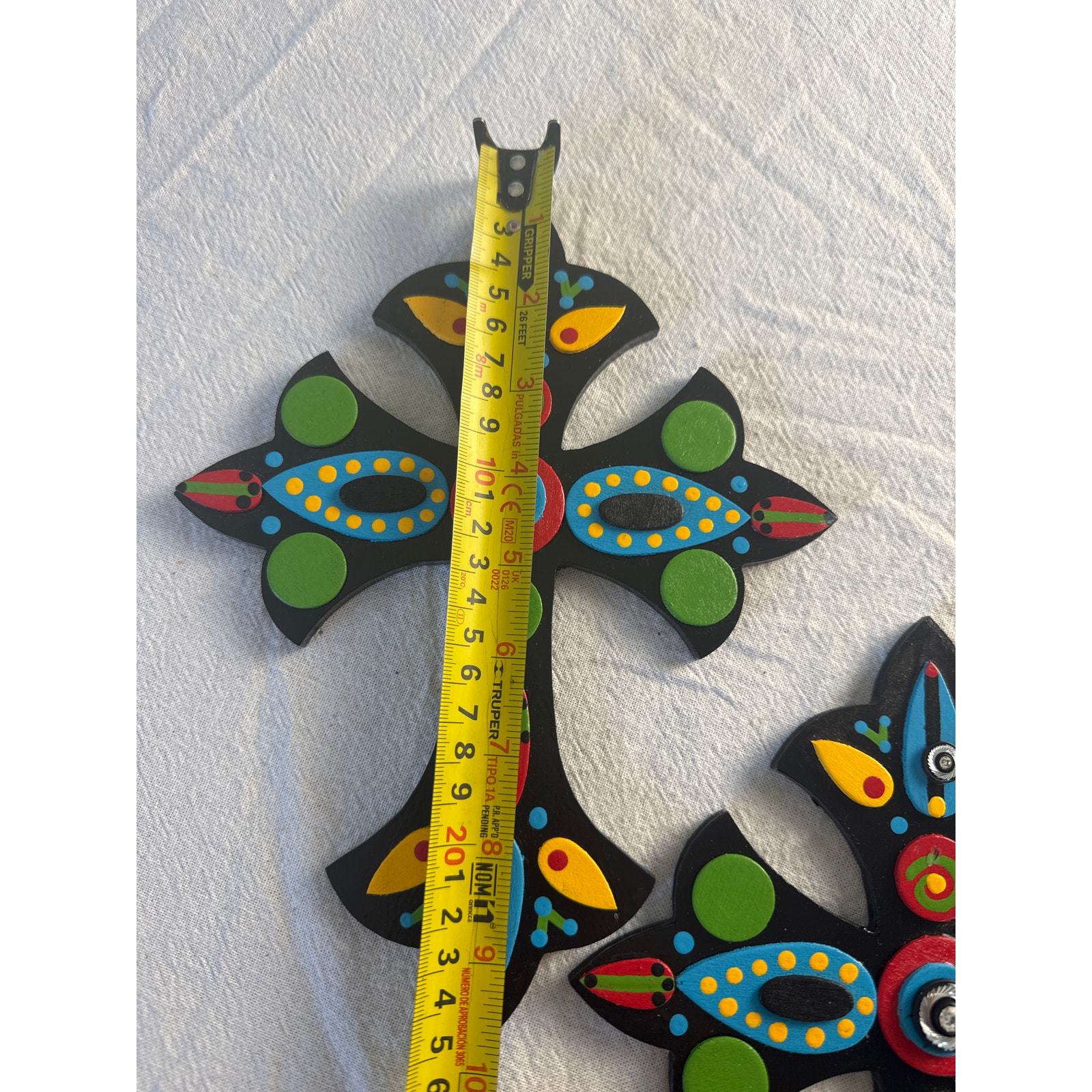 Set of 2 Colorful Hand-Painted Wall Crosses – Mexican