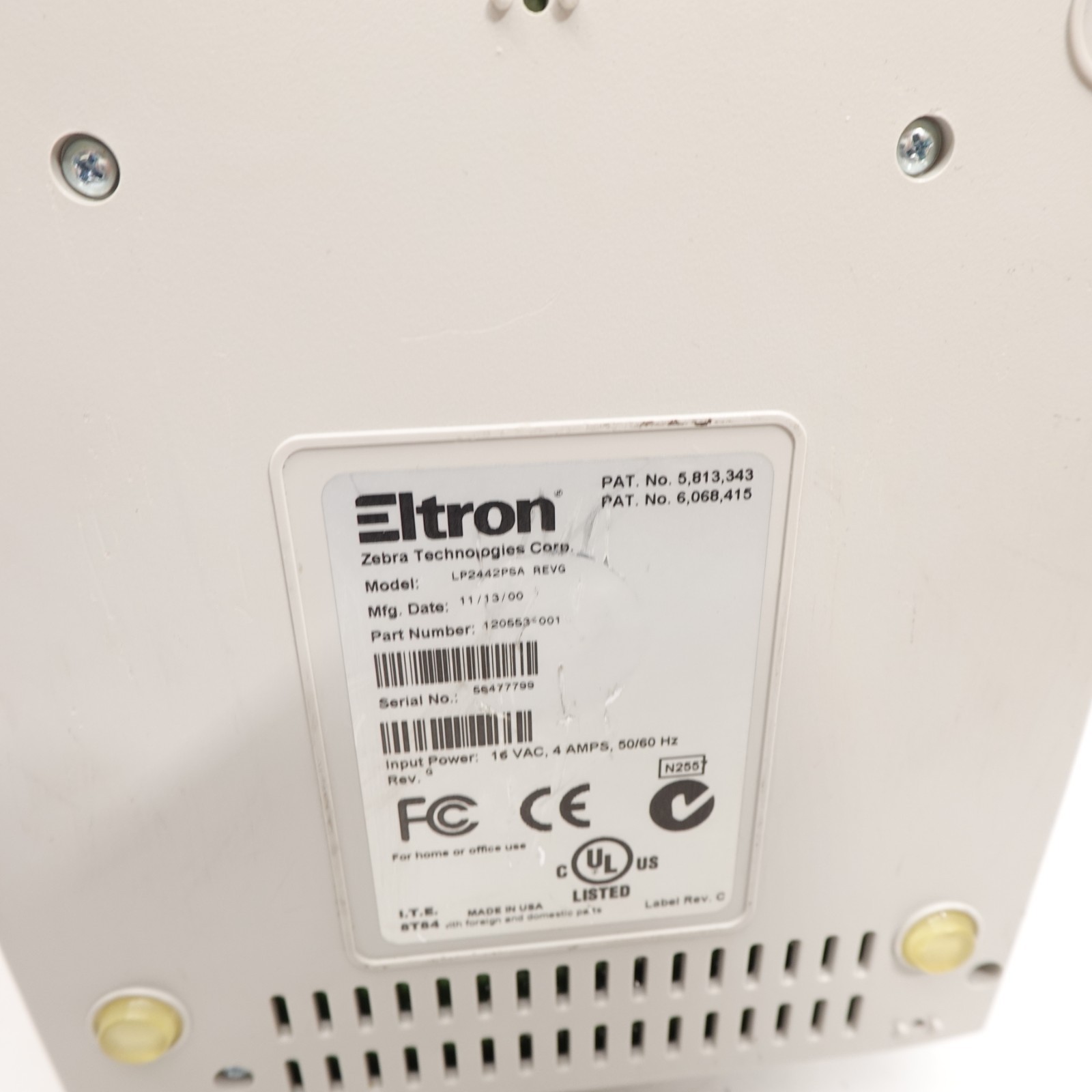 Eltron Zebra UPS 2442 LP2442PSA Thermal Label Printer No AC Adapter Power Tested