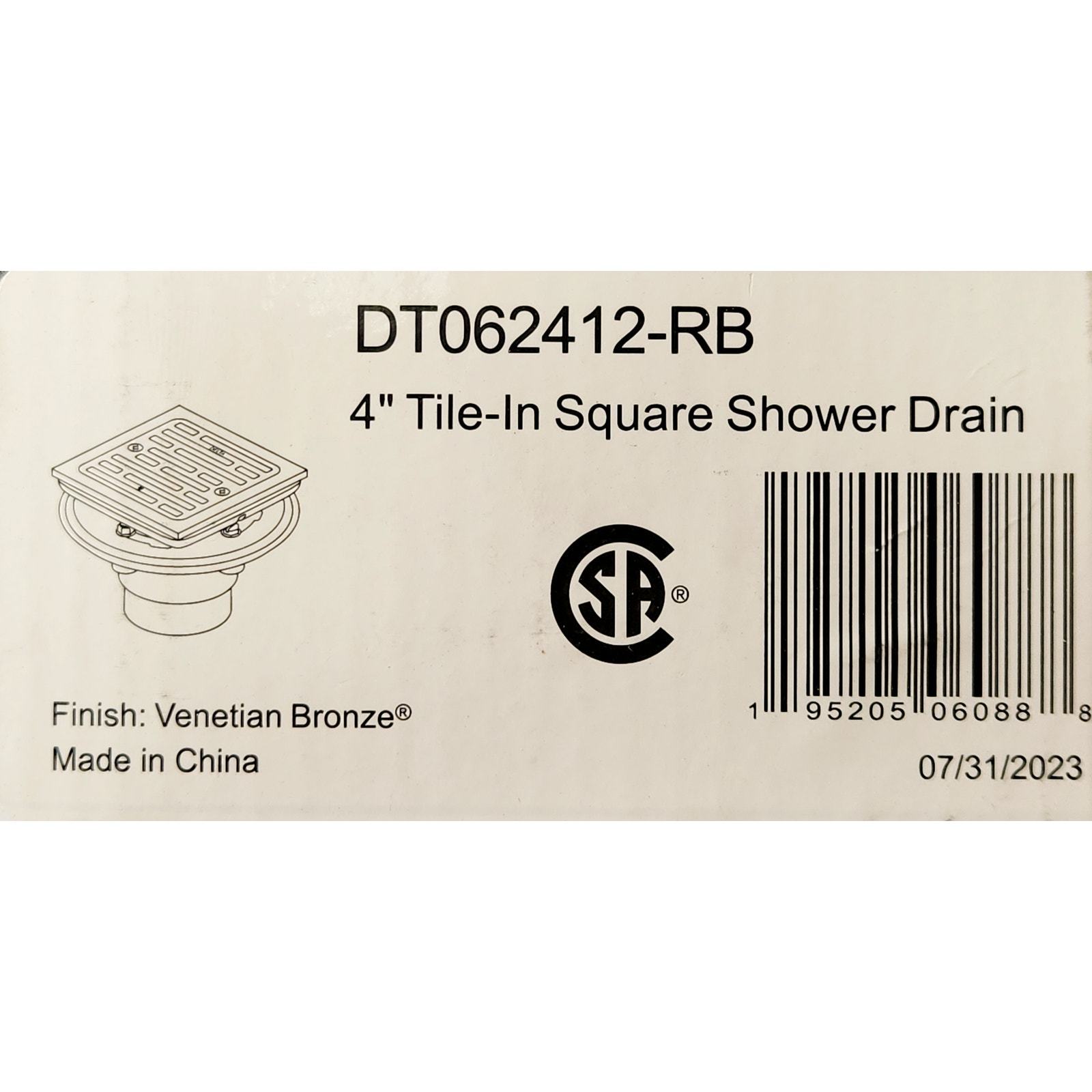 Delta DT062412-RB 4" Square Shower Floor Drain - Venetian Bronze