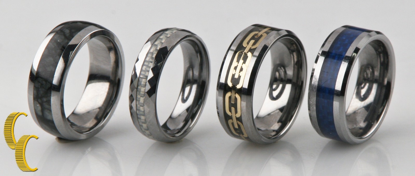 Tungsten Band/ Ring, Lot of 4 Sizes 8 to 9