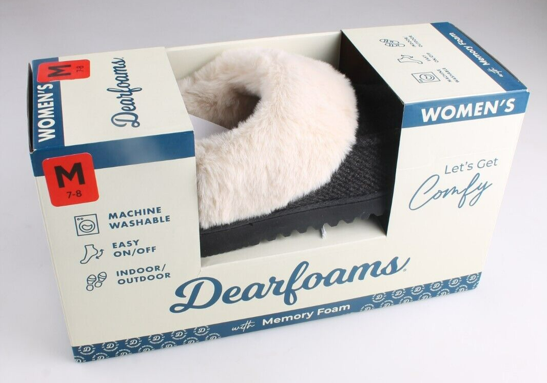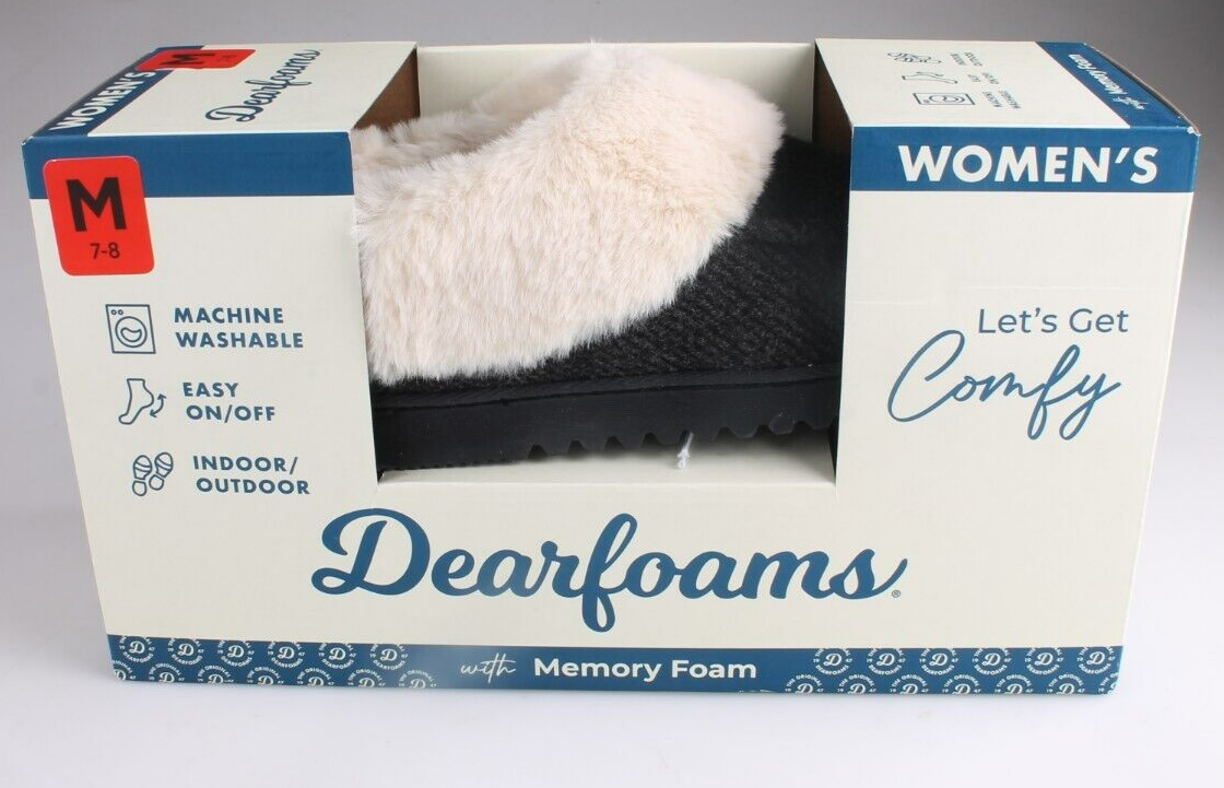 Chaussons Pour Femmes Dearfoams Avec Mousse À Mémoire Noirs NEUFS Dans La Boîte