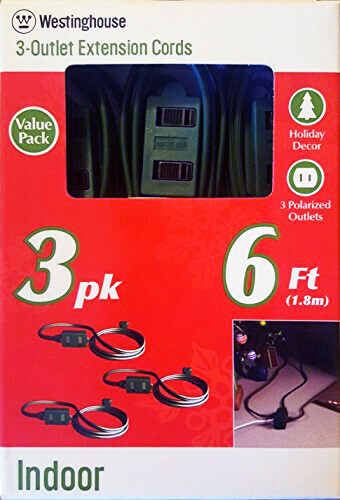 This is for Two (2) brand new Westinghouse 3 Packs of 6 ft. Indoor Holiday Decor Outlet Extension Cords Total of six extension cords These Westinghouse 6ft indoor extension cords feature 3 polarized outlets with individual safety covers to protect against electrical shocks. Rated: 125V/13A/1625W. Others use Priority Mail option.